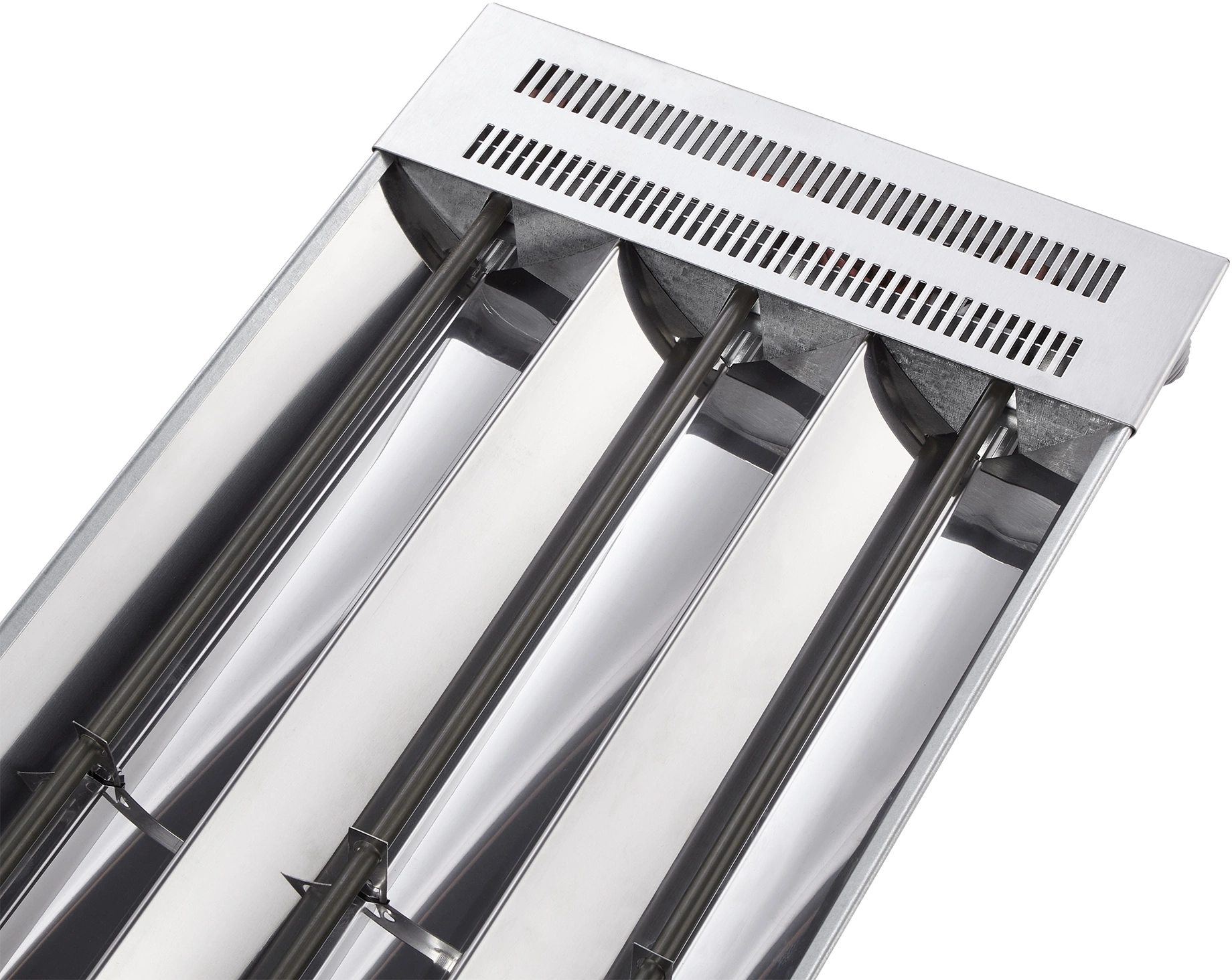 Мощный инфракрасный обогреватель BIH-T-6.0 справится с обогревом в любых условиях – при минусовых температурах и на ветру. Отличается универсальным монтажом под углом, надежными трубчатыми ТЭН-ами в оболочке из нержавеющей стали и отражателем из жаростойкой стали. Подвес на 4 – 20 м. Класс – IP20.