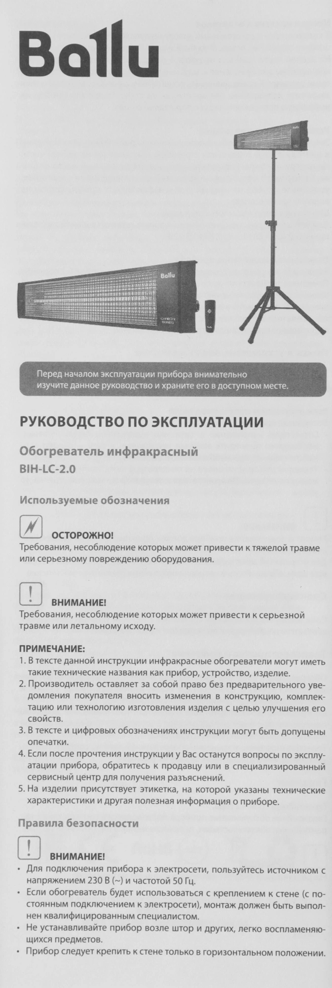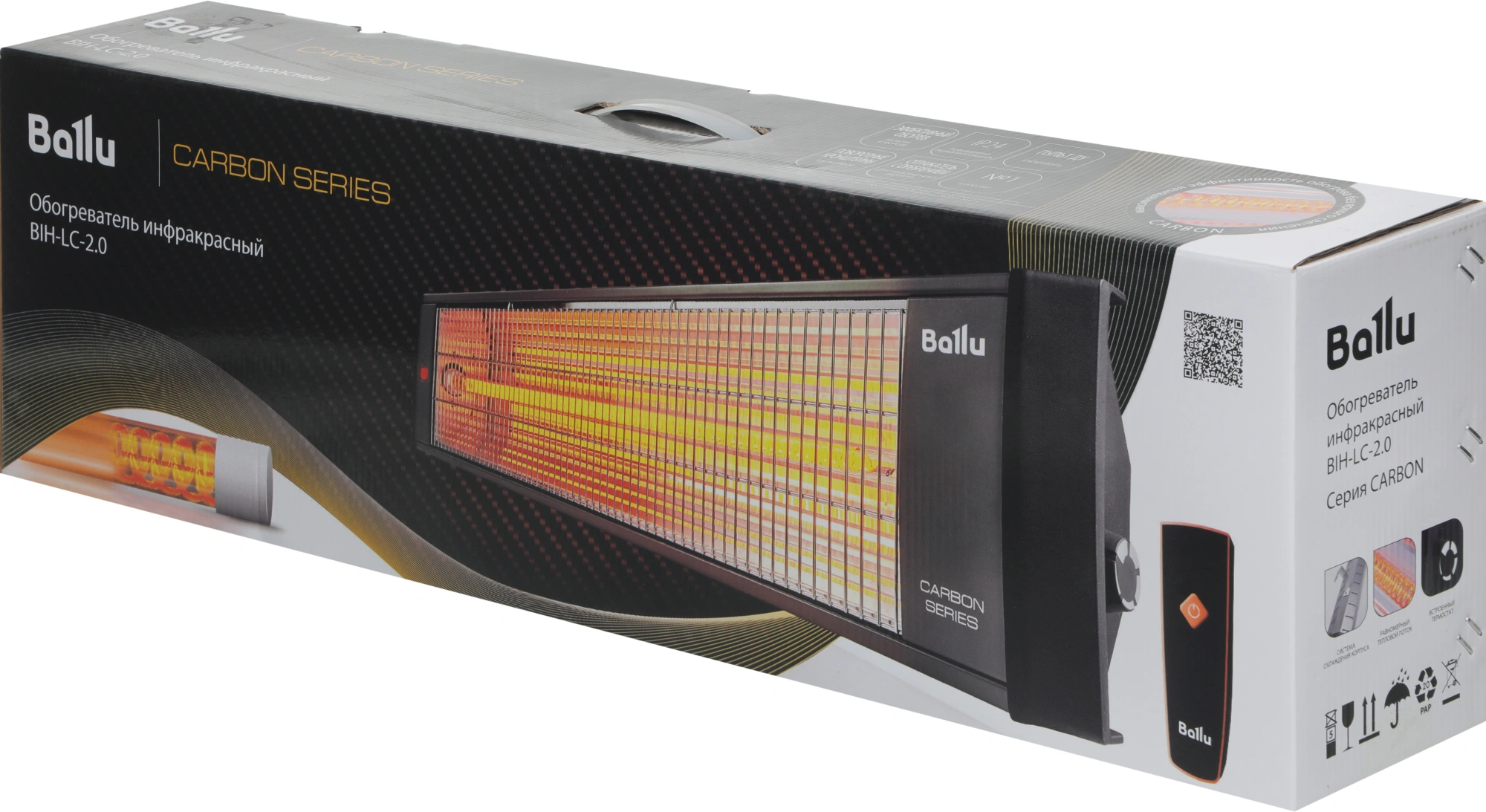 Инфракрасный карбоновый обогреватель BIH-LC-2.0 отличается нагревательным элементом – карбоновая лампа, служащая в 3 раза дольше кварцевой, с высокими эмиссионными свойствами углеволокна. Разогрев и остывание – всего 5-10сек. Высота установки – 1,8-3,5м. Встроенный термостат, пульт, кронштейн. IP24.