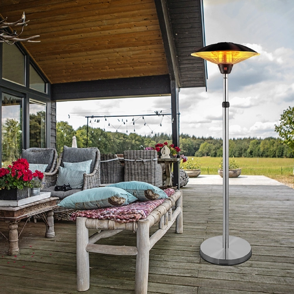 Карбоновый инфракрасный обогреватель типа "торшер" подойдет для частных домов и кафе. Телескопическая стойка из нержавеющей стали регулируется по высоте. Карбоновый нагревательный элемент служит дольше кварцевых, имеет высокие эмиссионные свойства углеволокна, разогревается всего за 5-10сек. IP44.