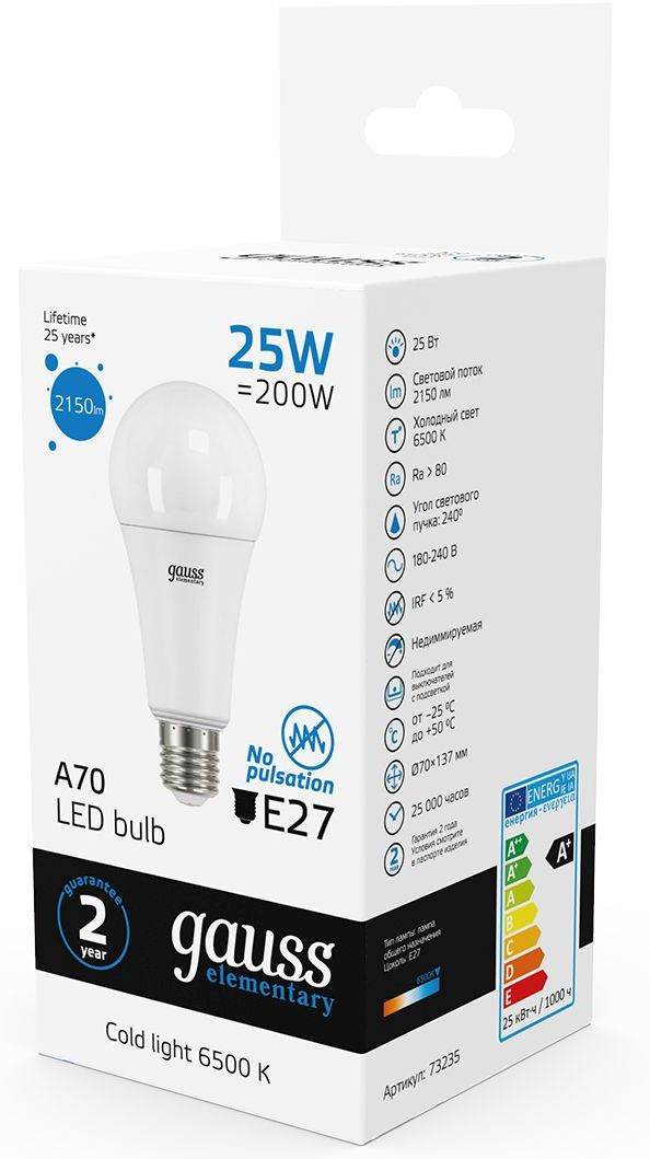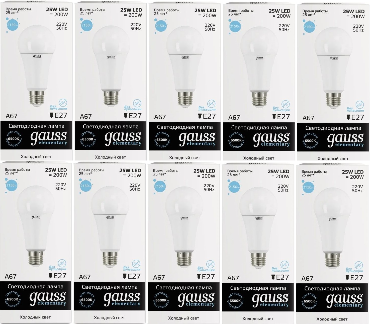 Лампа светодиодная Gauss Elementary 25Вт цок.:E27 груша 220B св.свеч.бел.хол. A67 (упак.:10шт) (73235)