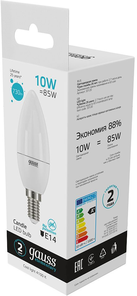 Светодиодная лампа Gauss - безопасный для здоровья и окружающей среды источник света. Она не пульсирует, мгновенно включается, не содержит ртути и имеет больший срок службы, чем лампы накаливания и КЛЛ, экономичнее ламп накаливания до 10 раз.