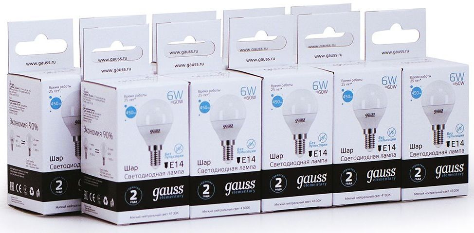 Светодиодная лампа Gauss - безопасный для здоровья и окружающей среды источник света. Она не пульсирует, мгновенно включается, не содержит ртути и имеет больший срок службы, чем лампы накаливания и КЛЛ, экономичнее ламп накаливания до 10 раз.