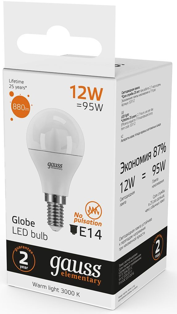 Светодиодная лампа Gauss - безопасный для здоровья и окружающей среды источник света. Она не пульсирует, мгновенно включается, не содержит ртути и имеет больший срок службы, чем лампы накаливания и КЛЛ, экономичнее ламп накаливания до 10 раз.