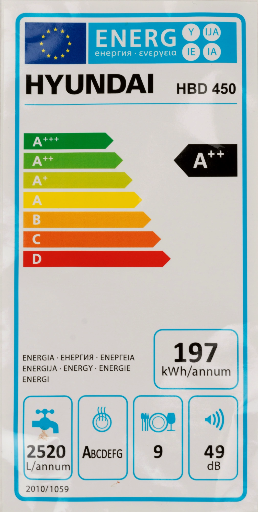 Посудомоечная машина HYUNDAI HBD 450 называется узкой, т.к. ее ширина составляет 45 см. (рассчитана на 9 комплектов посуды). Благодаря своим небольшим размерам эту модель посудомоечной машины можно разместить и в офисной, и в домашней кухне. В модели HBD 450 предусмотрены 2 выдвижные корзины для мытья посуды и стаканов (регулируемые по высоте), а для грязных столовых приборов предусмотрен отдельный контейнер, который входит в комплектацию прибора.