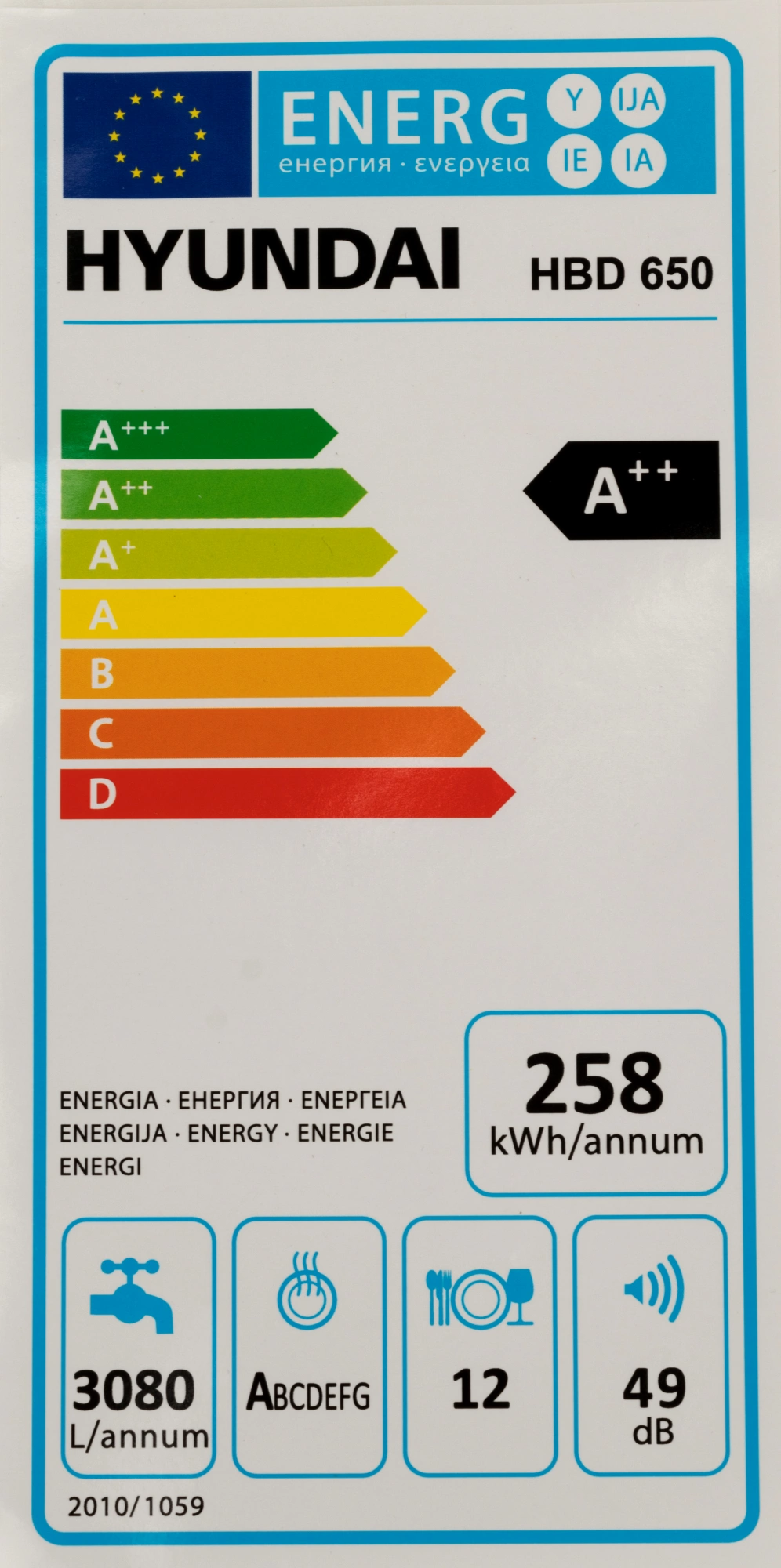Функционал посудомоечной машины HYUNDAI HBD 650 соответствуют всем требованиям по безопасной эксплуатации и энергоэффективности: