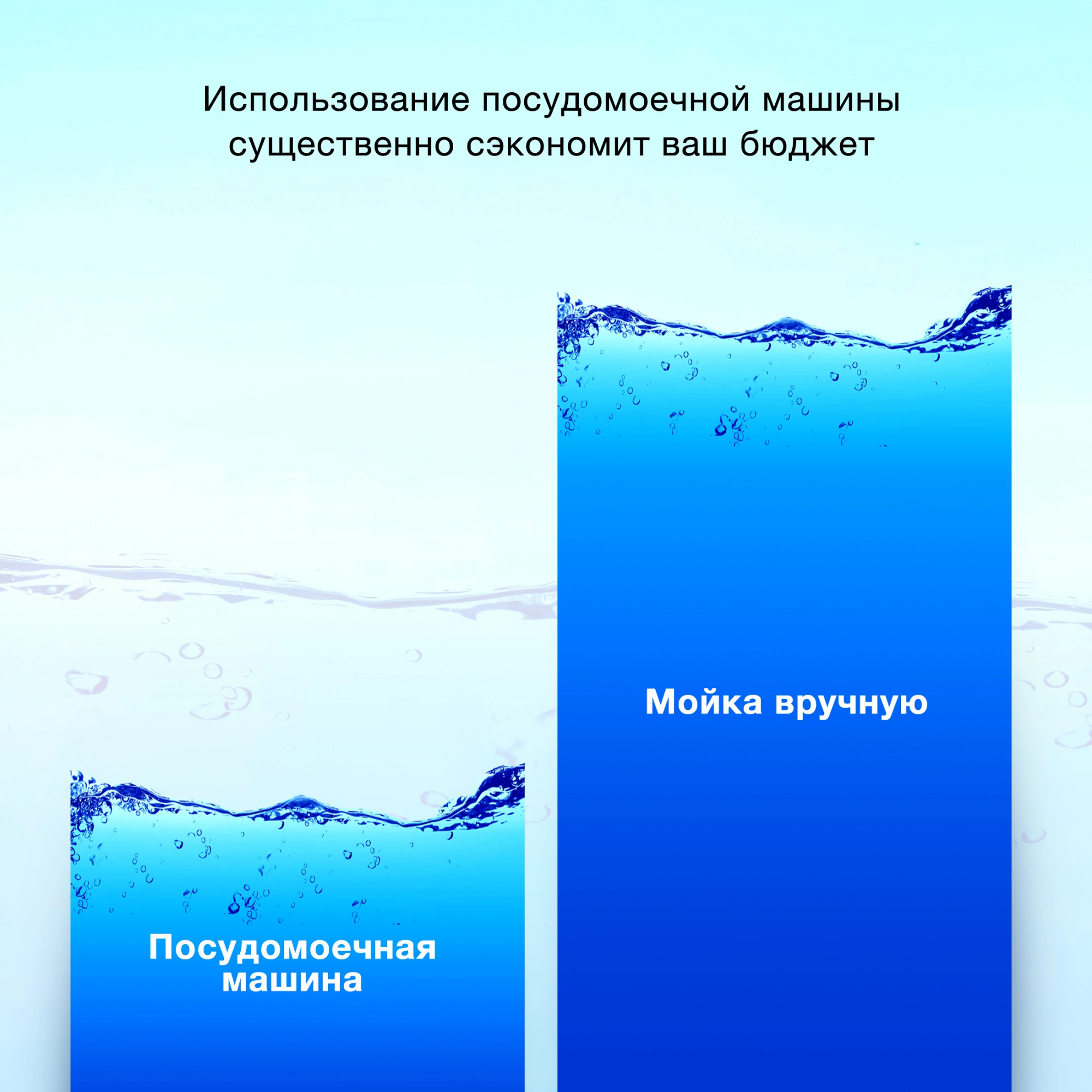 Одной из причин, побуждающих к приобретению посудомоечной машины является экономия. Многолетние тестирования подтверждают, что на 1 цикл мойки посуды в посудомоечной машине расходуется меньшее количество воды, чем если бы этот же объем посуды мыли руками.