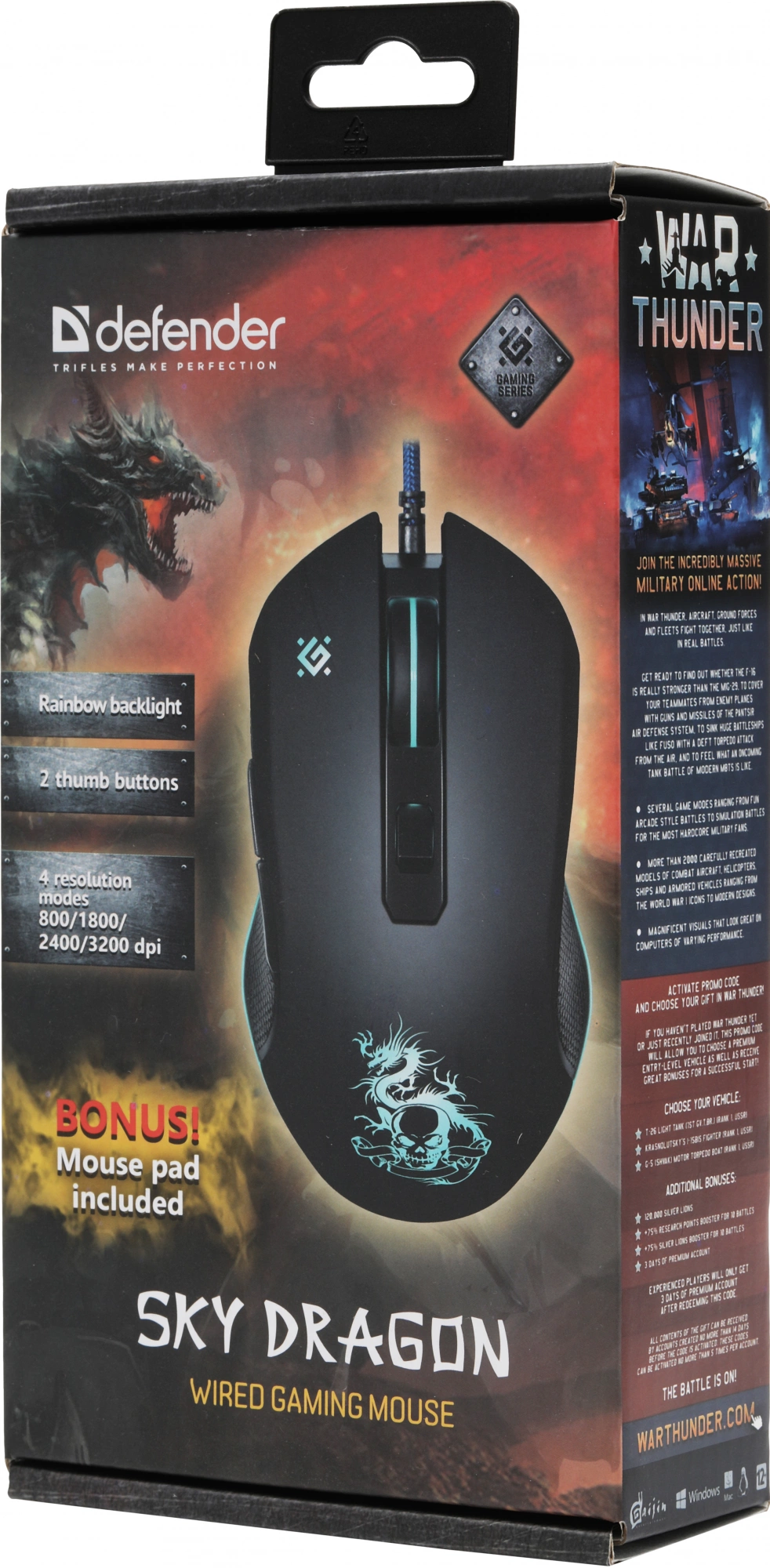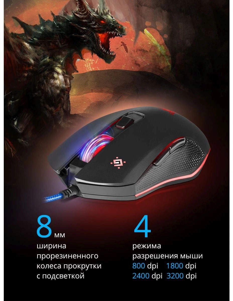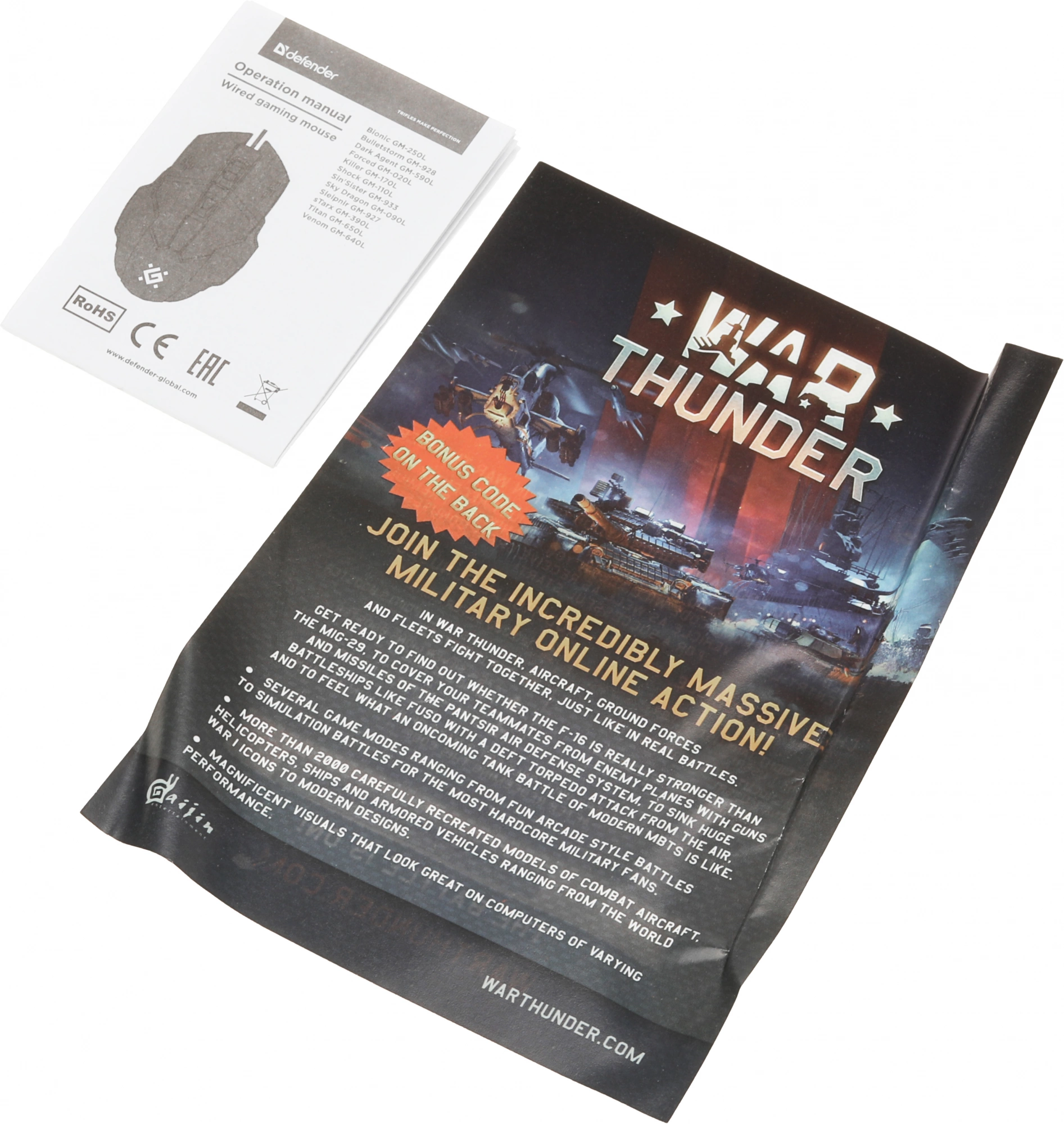 Программное обеспечение Defender Game Center. Редактор макросов. Эмуляция клавиш клавиатуры. Стабильная работа на высоких скоростях. Высокоточный сенсор. Ферритовый фильтр помех.