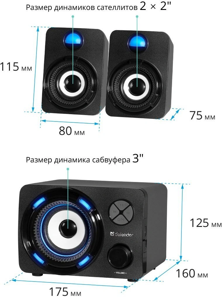 Фронтальные колонки (мощность одного динамика)