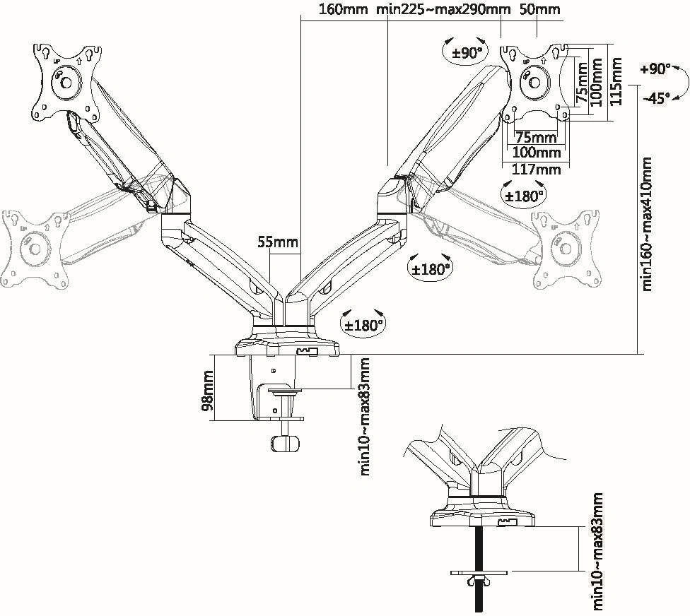 черный 13"-27" макс.13кг настольный поворот и накл...
