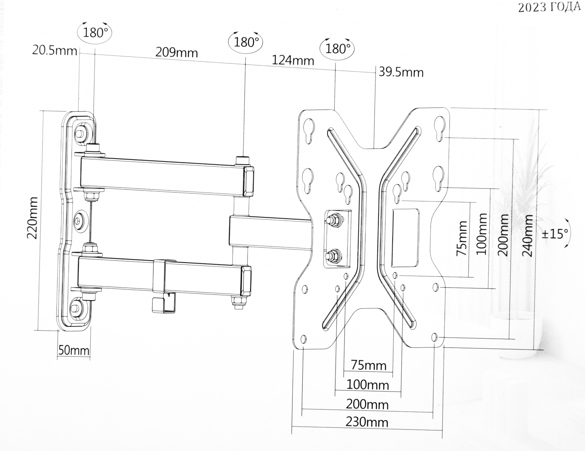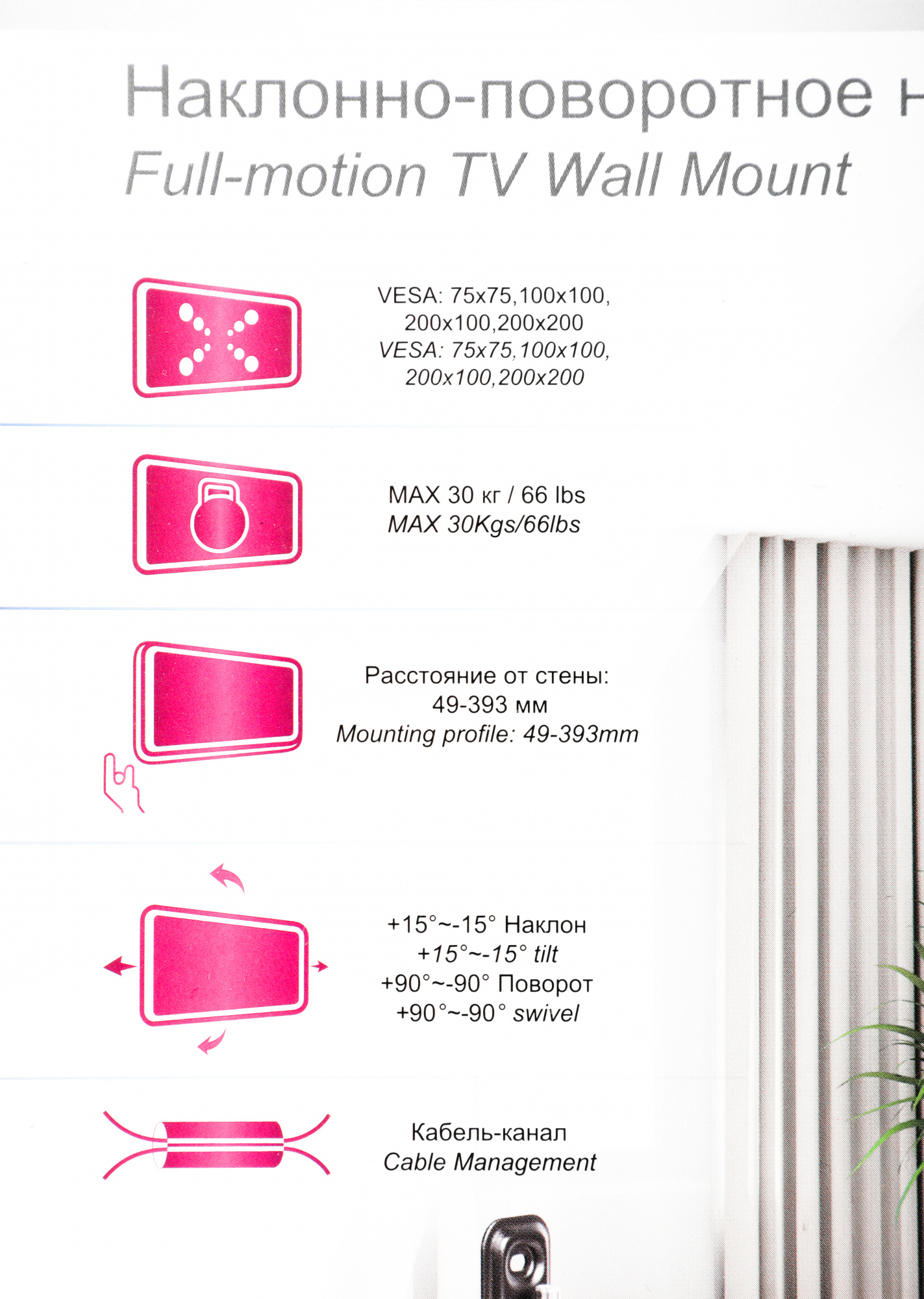черный 23"-43" макс.30кг настенный поворотно-выдви...