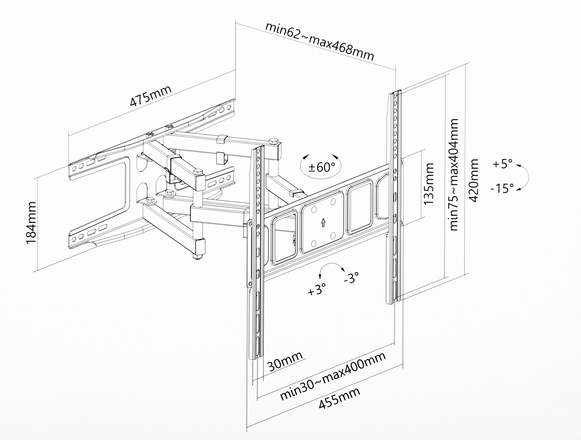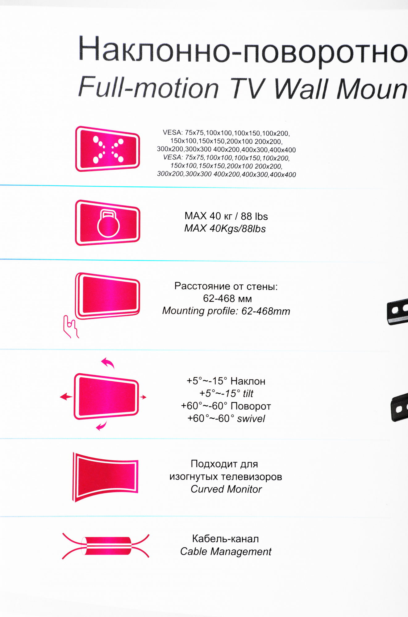 черный 32"-75" макс.40кг настенный поворотно-выдви...