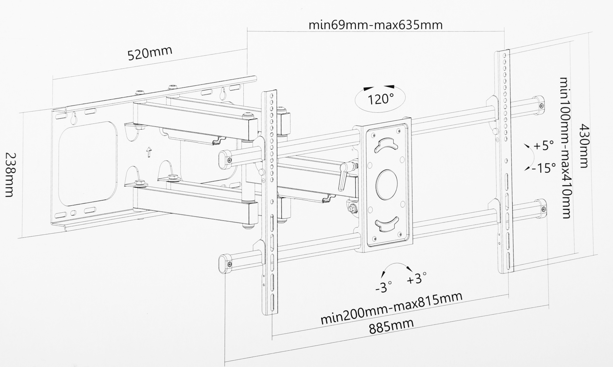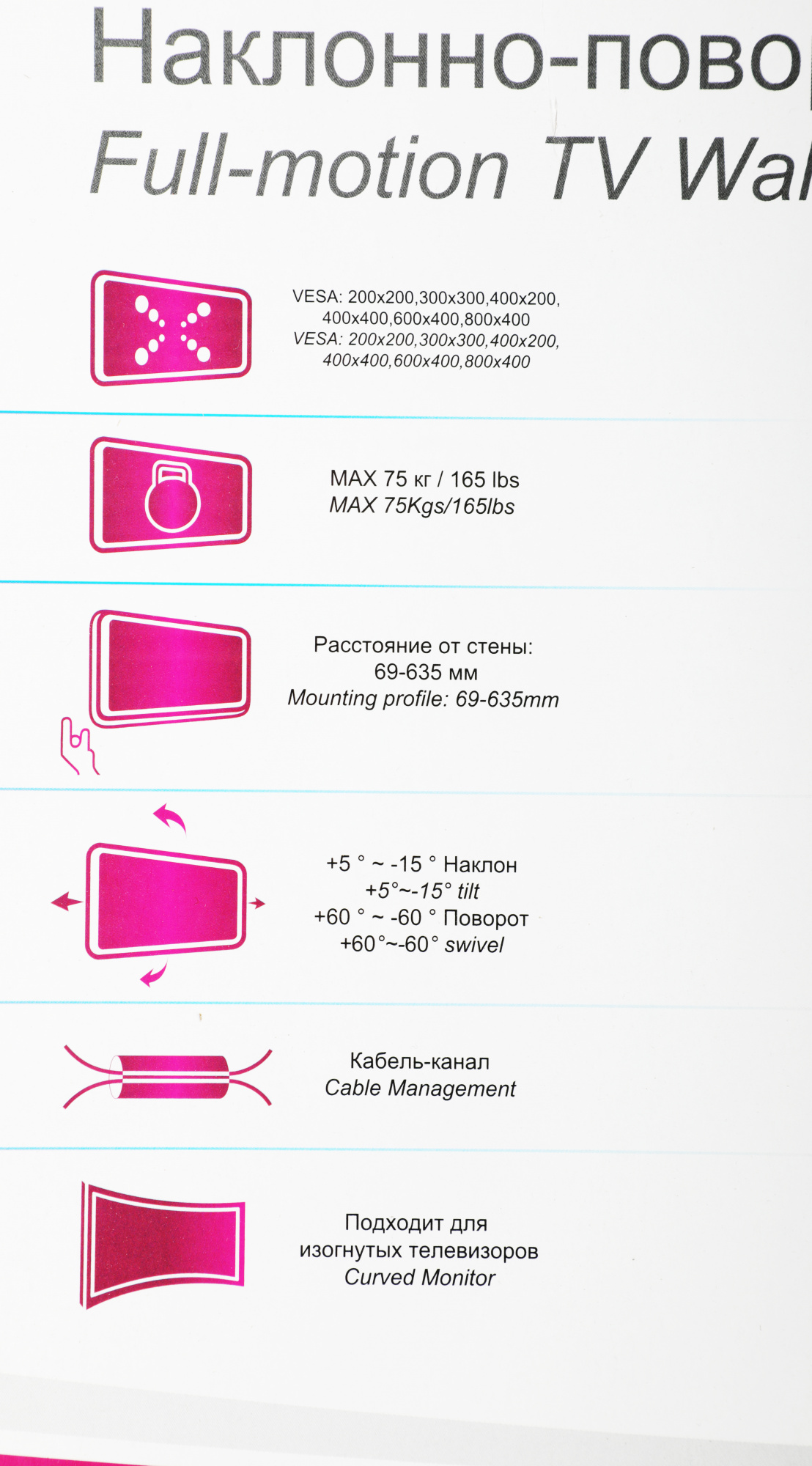 черный 37"-90" макс.75кг настенный поворотно-выдви...