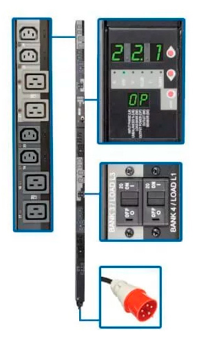 22.2kW 3-Phase Switched PDU - 12 C13 & 12 C19 Outlets, IEC 309 32A Red, 0U, Outlet Monitoring, TAA