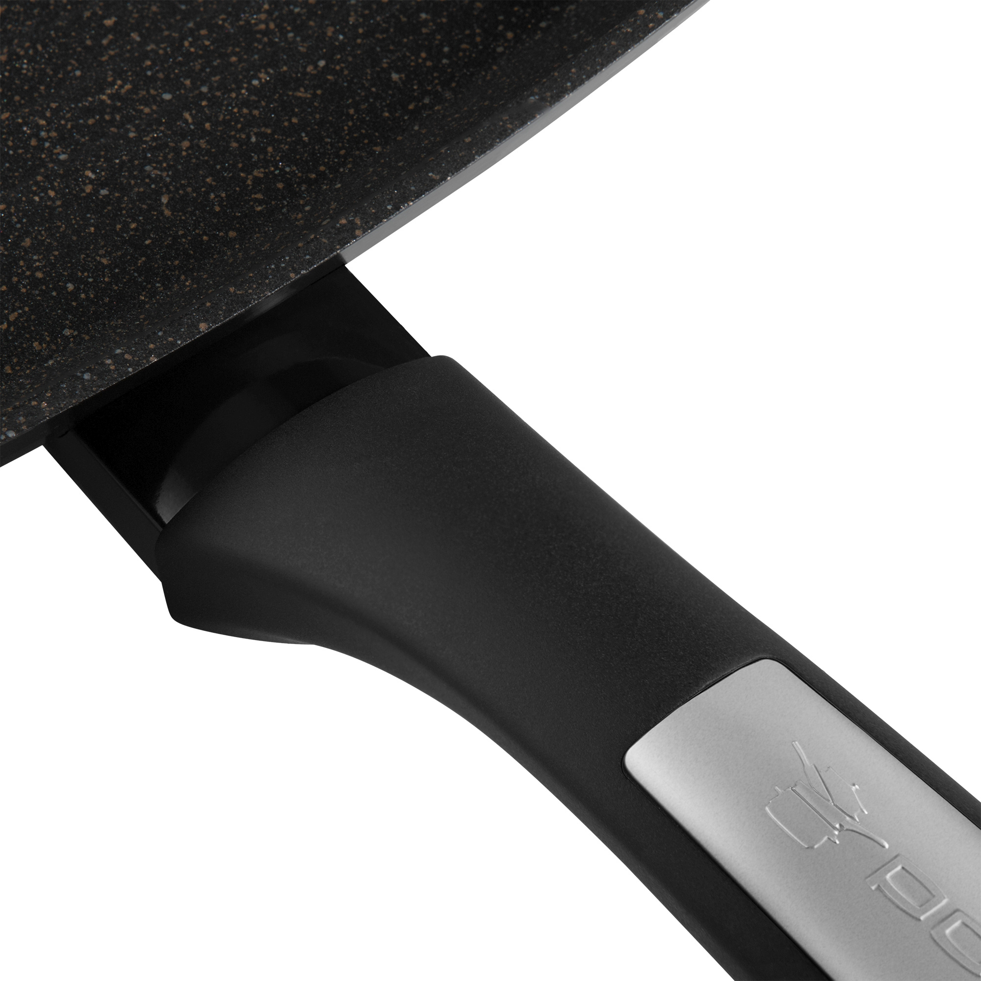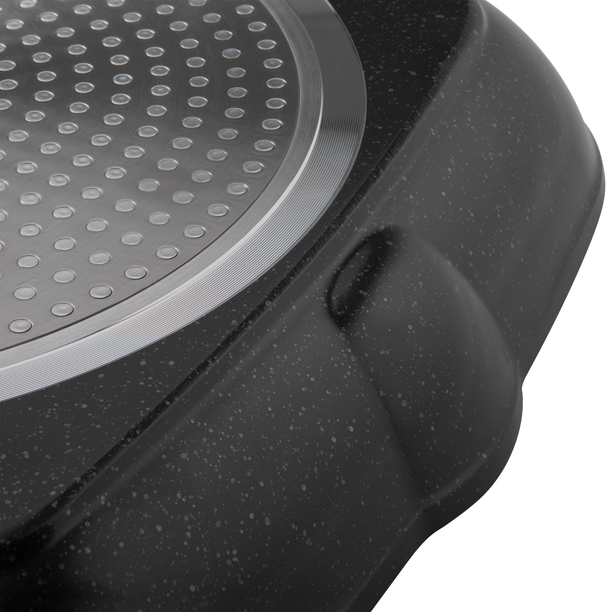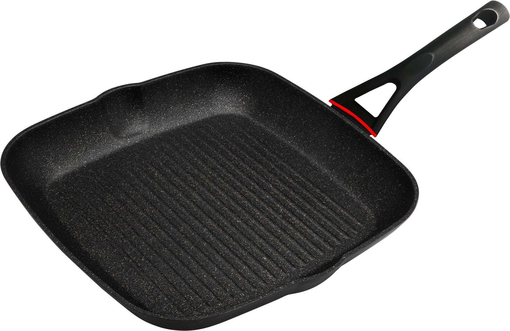 Сковорода-гриль изготовлена из высококачественного кованого алюминия толщиной 3.5мм. Внутреннее покрытие - высокопрочное антипригарное 5-слойное покрытие с керамической крошкой в составе Megastone PRO-5 от компании Dyflon. Эргономичная бакелитовая ручка с покрытием Soft Touch.