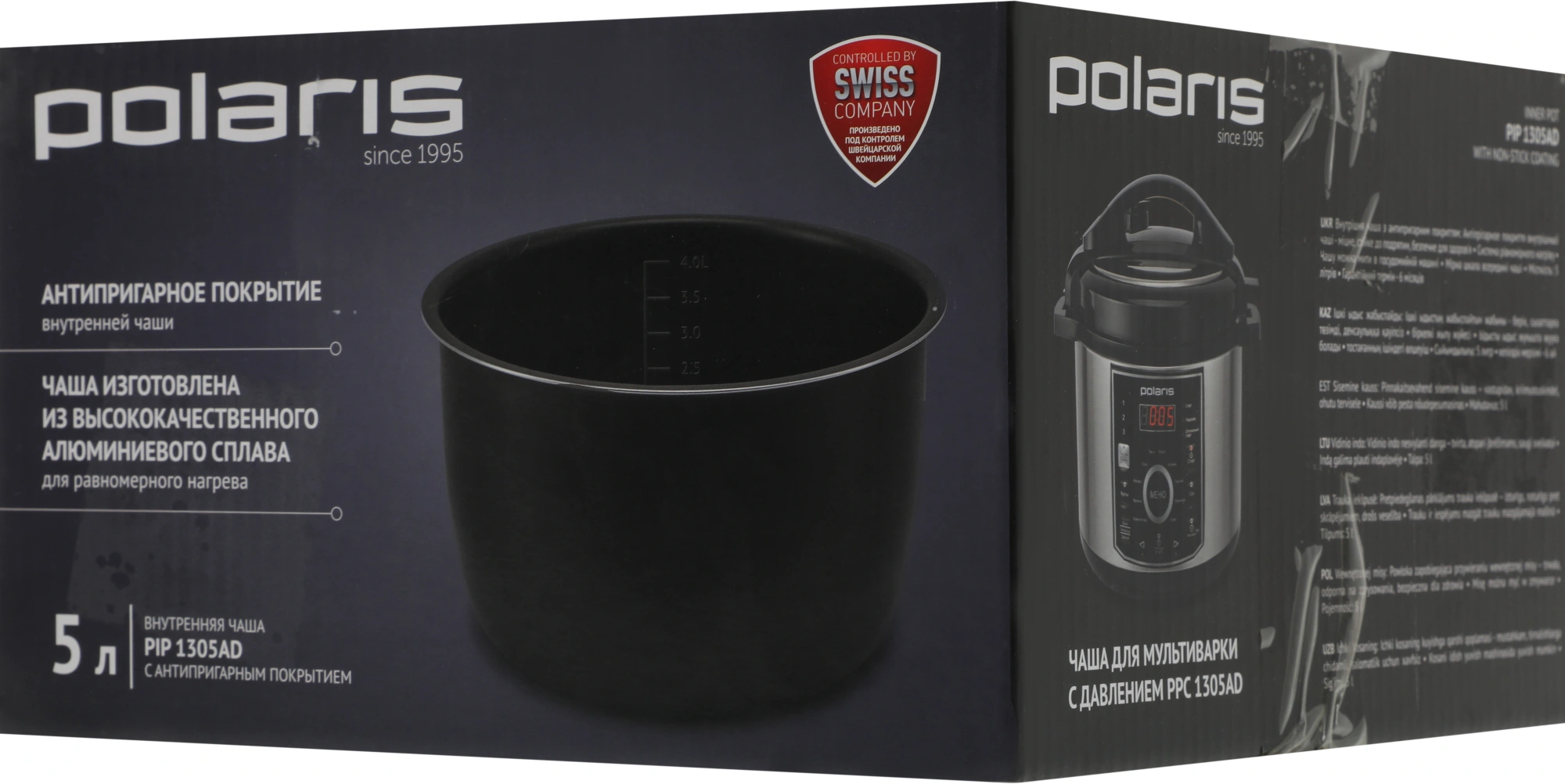 Чаша Polaris PIP 1305AD изготовлена из высококачественного алюминиевого сплава для равномерного нагрева. Чашу можно мыть в посудомоечной машине.