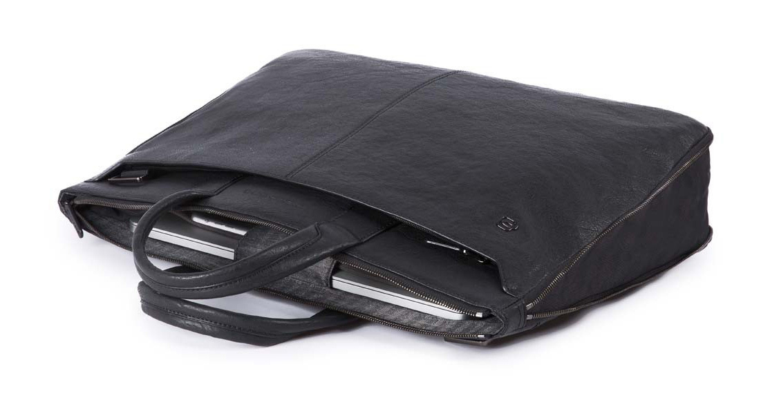 Сумка имеет одно большое отделение с отсеками для 17.3 дюймового ноутбука и 10.5 дюймового планшета, а также внутренний карман на молнии и кармашки для телефона и письменных принадлежностей. Молния по периметру позволяет увеличить ширину сумки на 4 см.