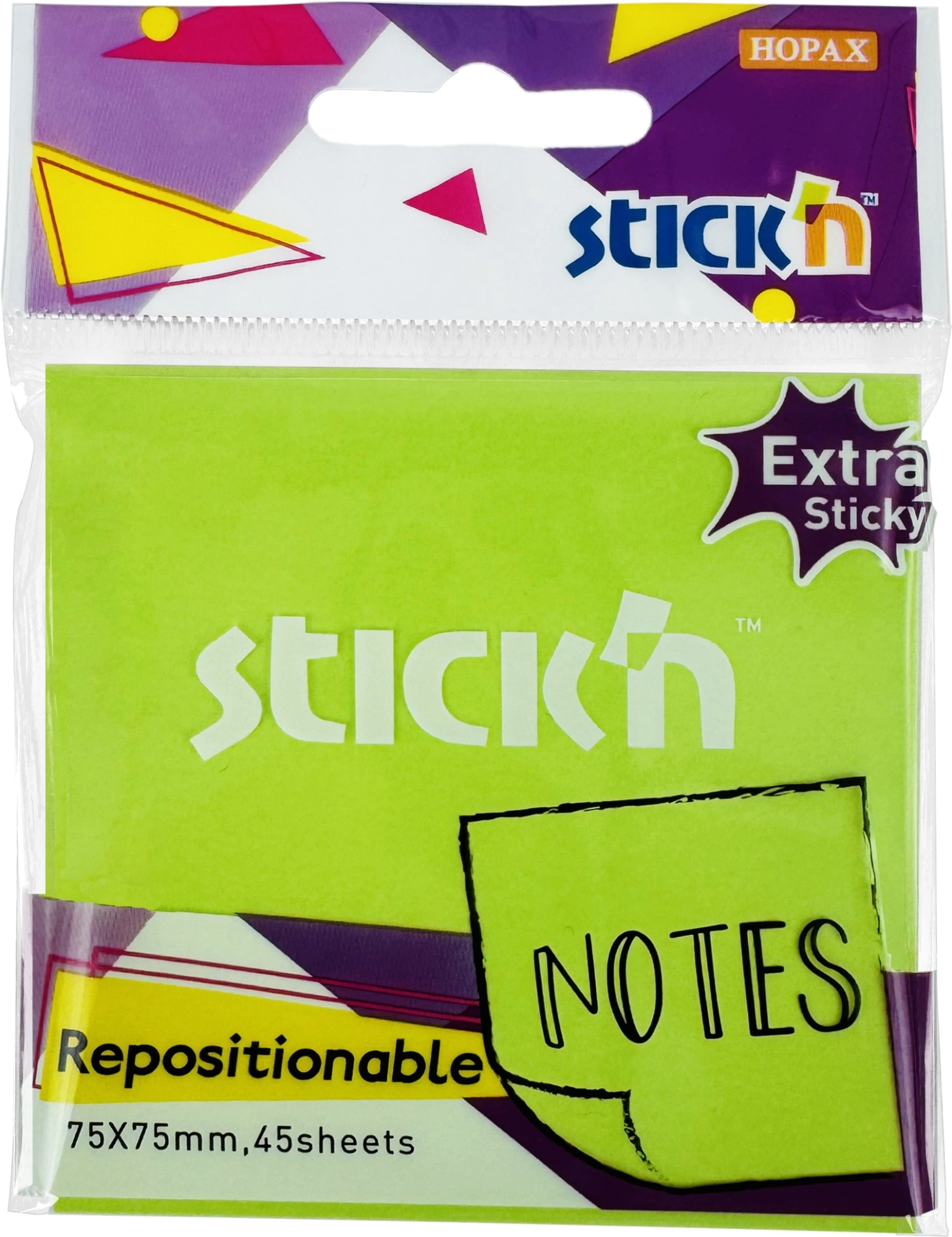 Блок самоклеящийся бумажный Stick`n 27097 76x76мм 45лист. зеленый неон 1цв.в упак. усиленный клей