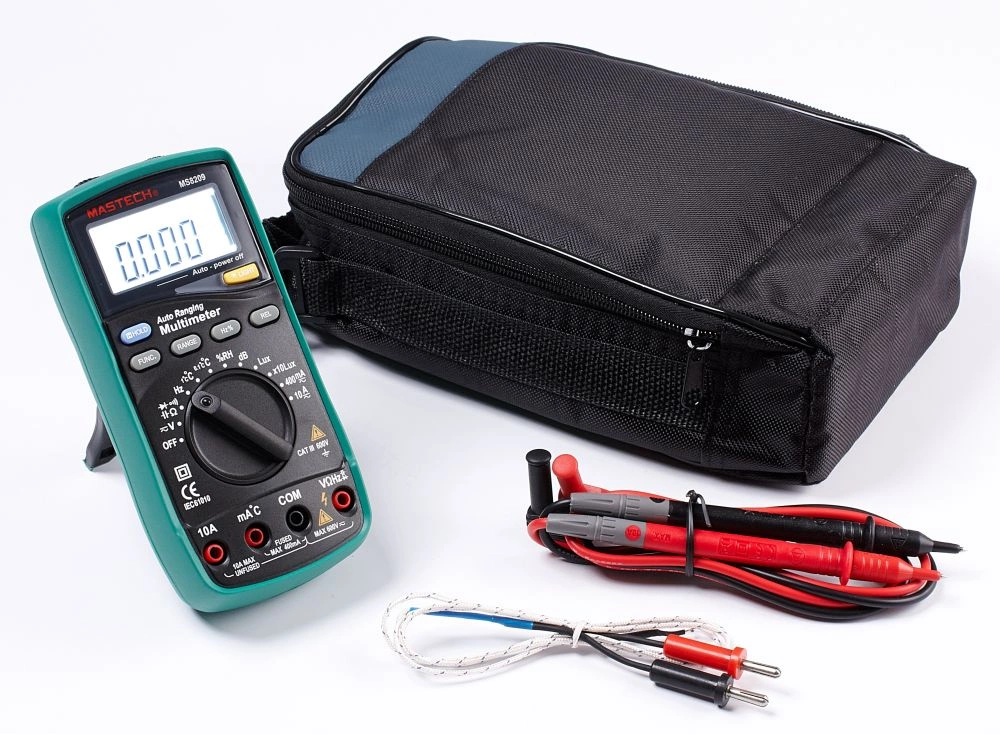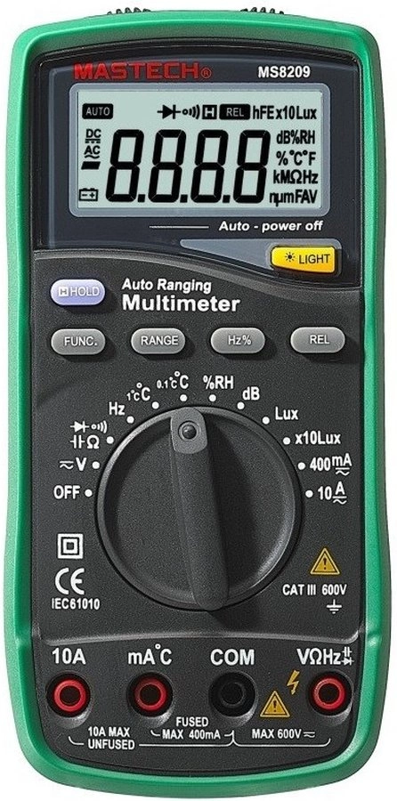 Многофункциональный мультиметр MASTECH MS8209 - измерительный прибор, сочетающий в себе функций 5 приборов: измерителя уровня шума, люксметр, измерителя влажности, температуры и цифровой мультиметр.