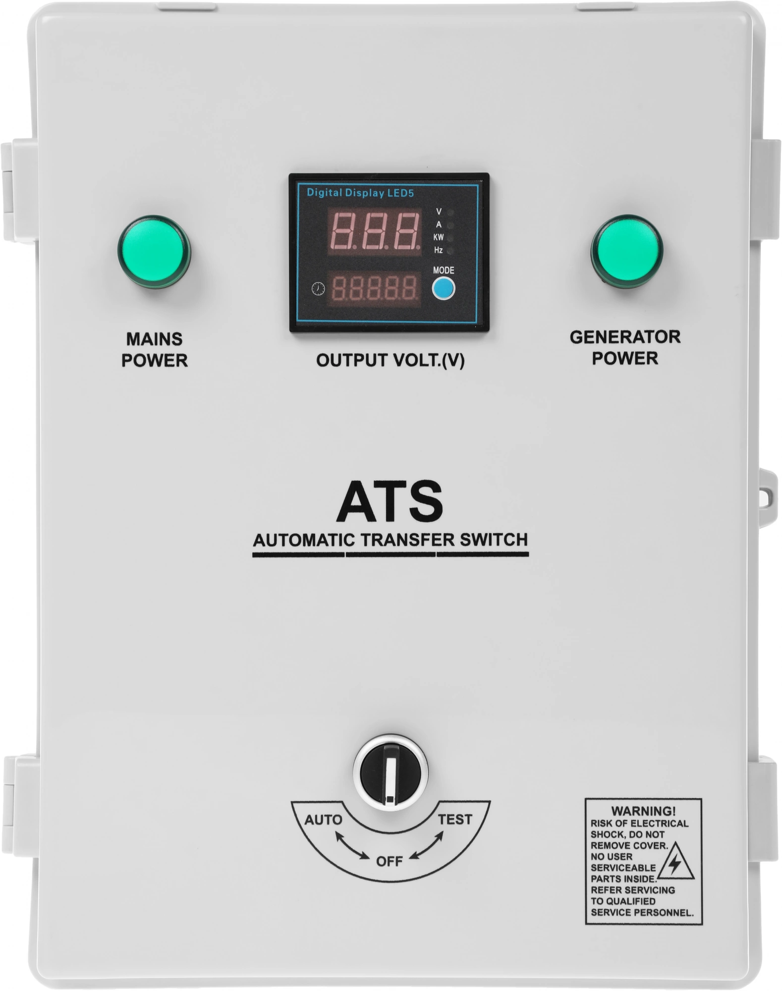 Система ATS – Автоматическая Система Переключения предназначена для переключения питания основной сети электроснабжения на ваш генератор для резервного (аварийного) питания вашей домовой электросети. Ваш генератор обязательно должен быть оборудован входом для подключения ATS.