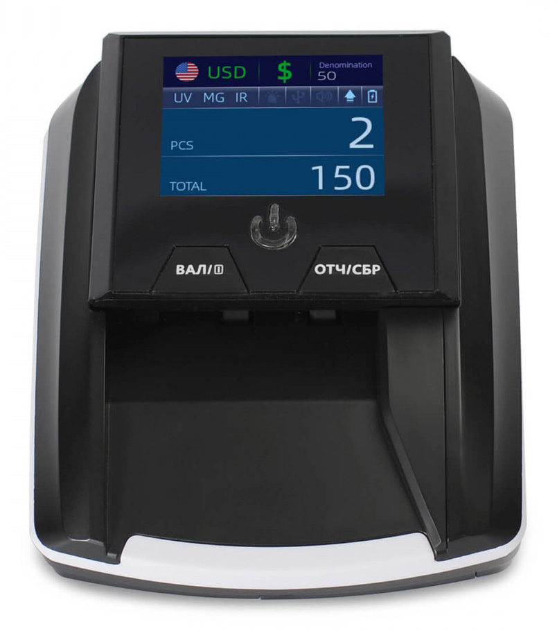 Детектор обладает простым интерфейсом. Проверять купюры может человек с любым уровнем подготовки. Итоги проверки выводятся на TFT дисплей.