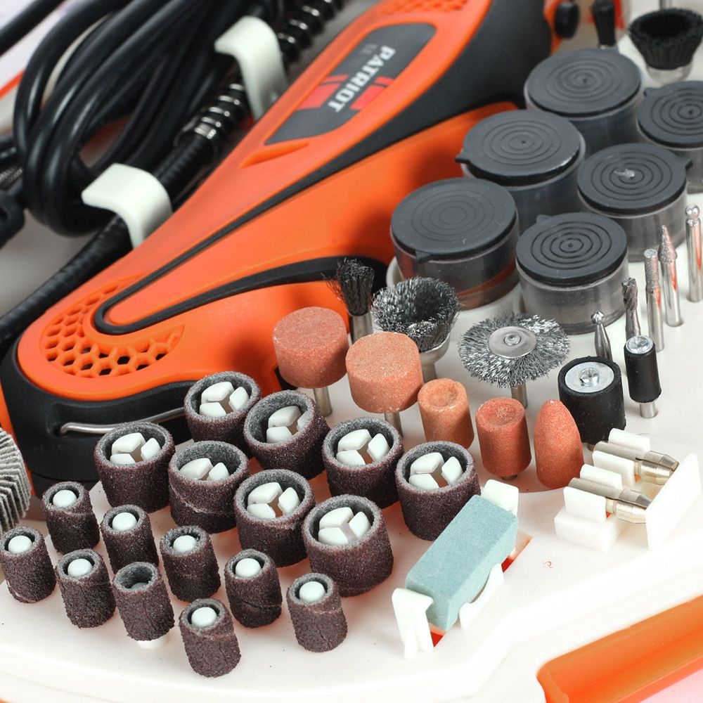 Гравер Patriot с надежным электродвигателем и эффективной системой охлаждения, способен справится с широким кругом задач, таких как резка, полирование, абразивная обработка, гравирование, шлифование и чистка. В комплект поставки инструмента входят наиболее распространенные насадки.