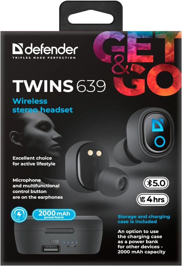 Наушники Defender Twins 639 созданы с учетом анатомии ушной раковины, поэтому практически не ощущаются и при этом надежно держатся в ушах. Удобный зарядный кейс емкостью 2000 мАч позволит быстро зарядить наушники и защитит их при переноске.
