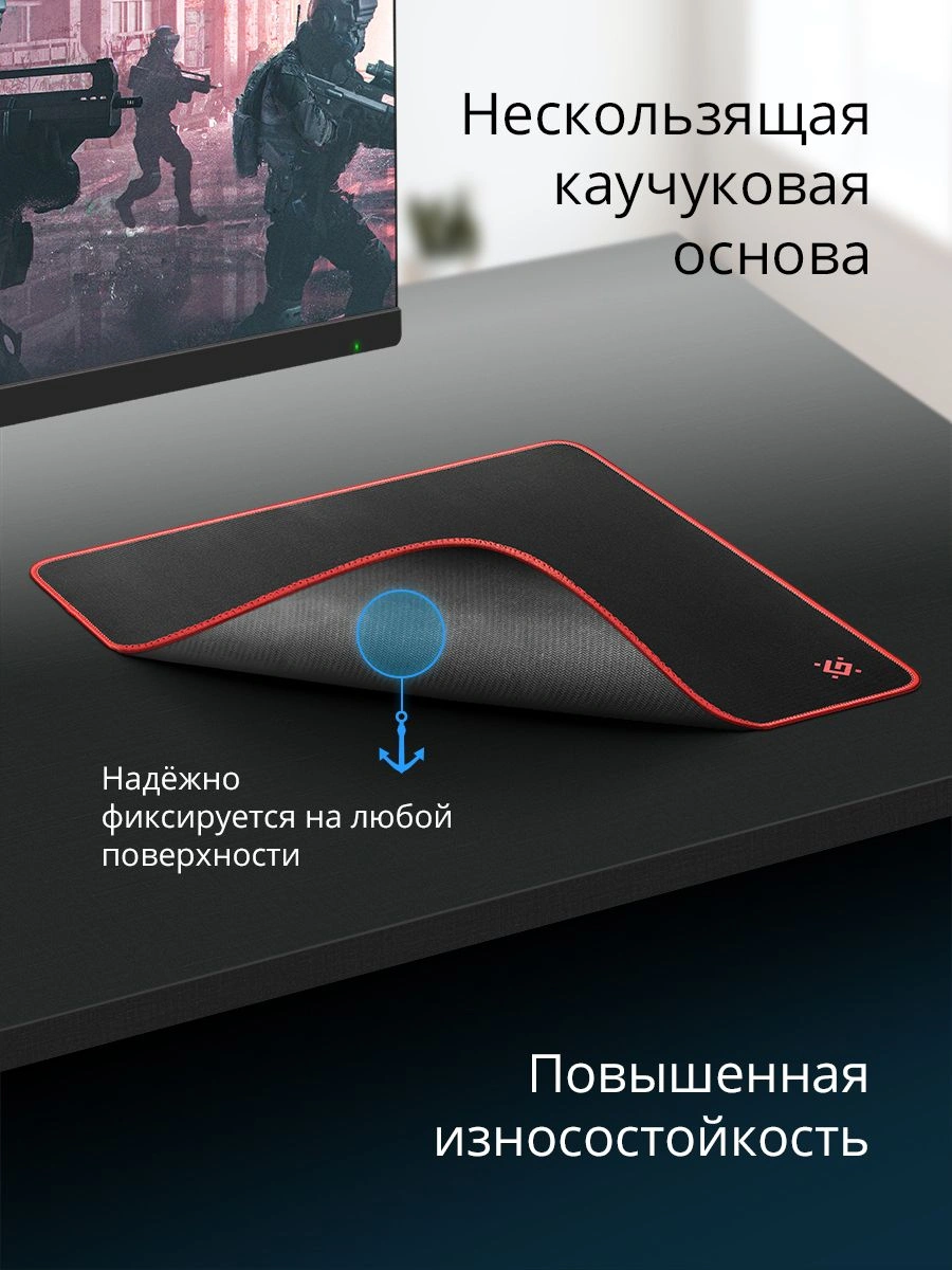 Гладкая поверхность. Повышенная износостойкость.Нескользящая каучуковая основа.Большой размер для удобной работы на низком разрешении