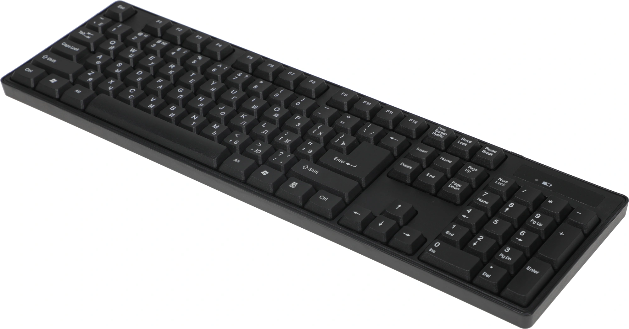 Индикатор над цифровым блоком заранее предупредит о скором окончании заряда батареи. Компактная клавиатура экономит пространство рабочего стола.