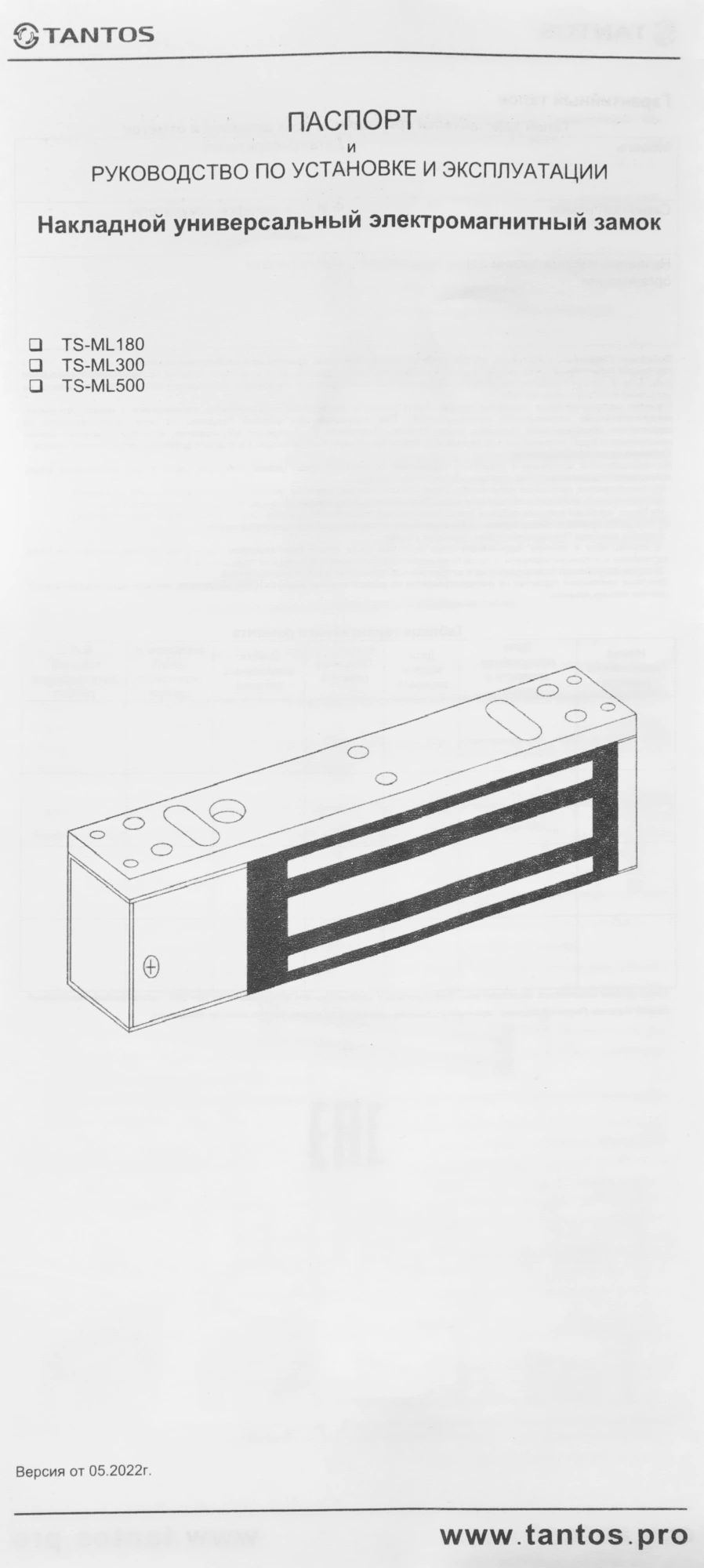 TS-ML180 Tantos Замок электромагнитный, усилие удержания 180кг. питание 12В/300мА. габариты 170х34х20,5мм, В комплекте монтажная планка, для крепления на уголок необходим TS-LM180