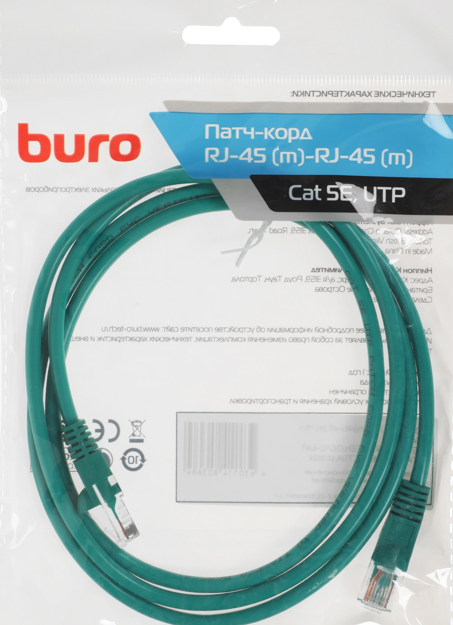UTP 4 пары cat.5E CCA molded 1.5м зеленый RJ-45 (m...