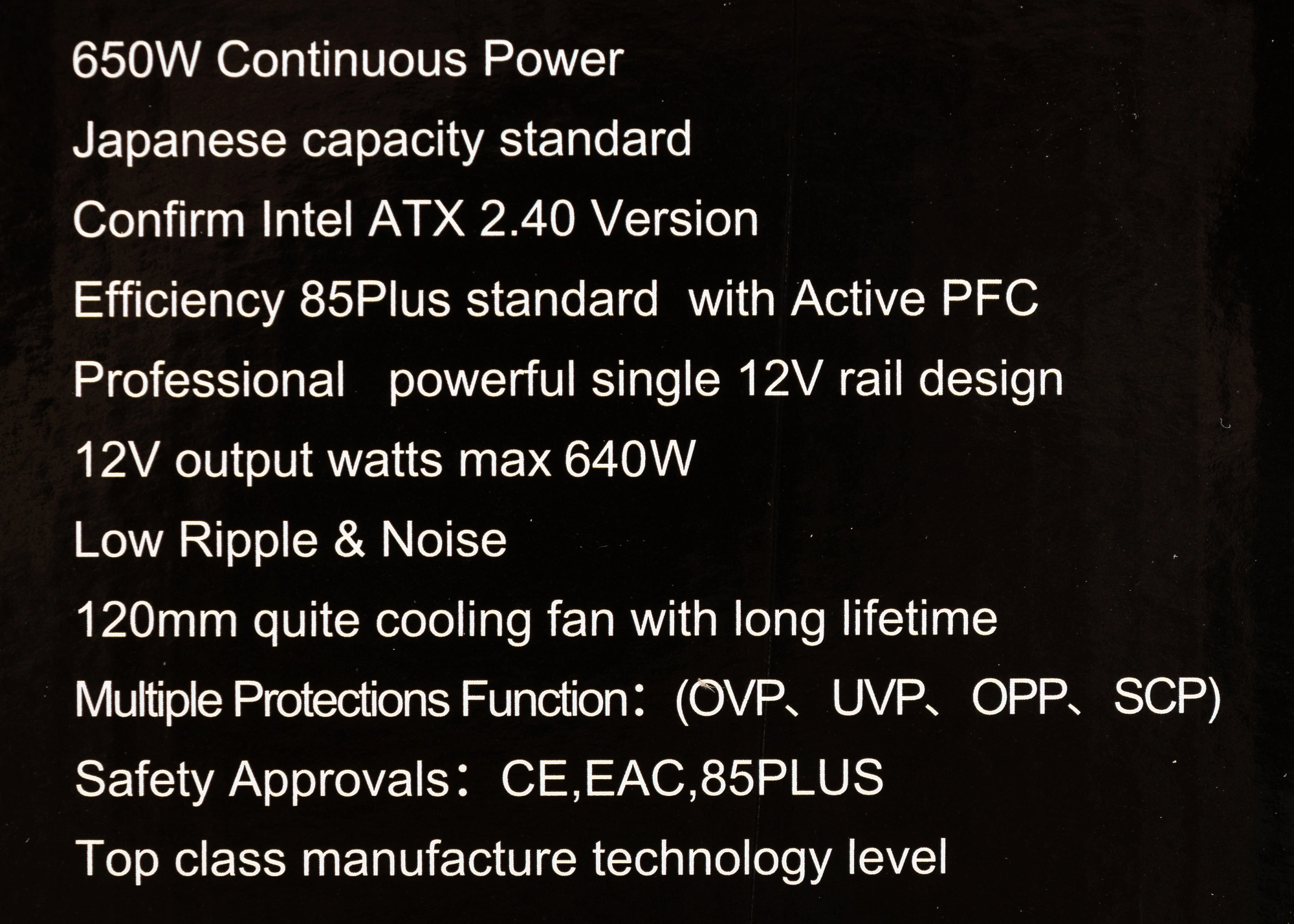 OPP (защита от перегрузки), OVP (защита от подачи повышенного напряжения), SCP (защита от короткого замыкания), UVP (защита от подачи пониженного напряжения)