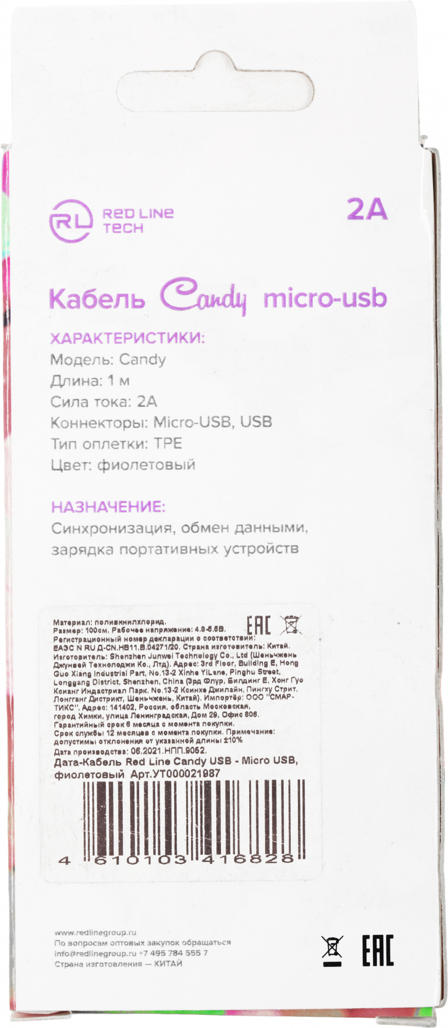 Длина:1 м сила тока:2а коннекторы:micro-usb, usb тип оплетки: TPE цвет:белый