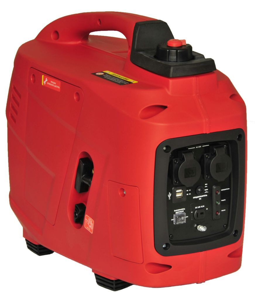 4-тактный бензиновый двигатель. Инверторное преобразование тока. Автоматическое отключение при низком уровне масла. Индикатор нормальной работы электростанции. Индикатор перегрузки электростанции. Индикатор низкого уровня масла в двигателе.