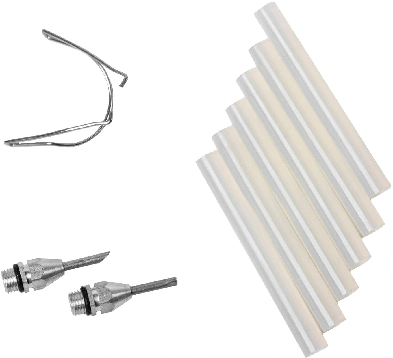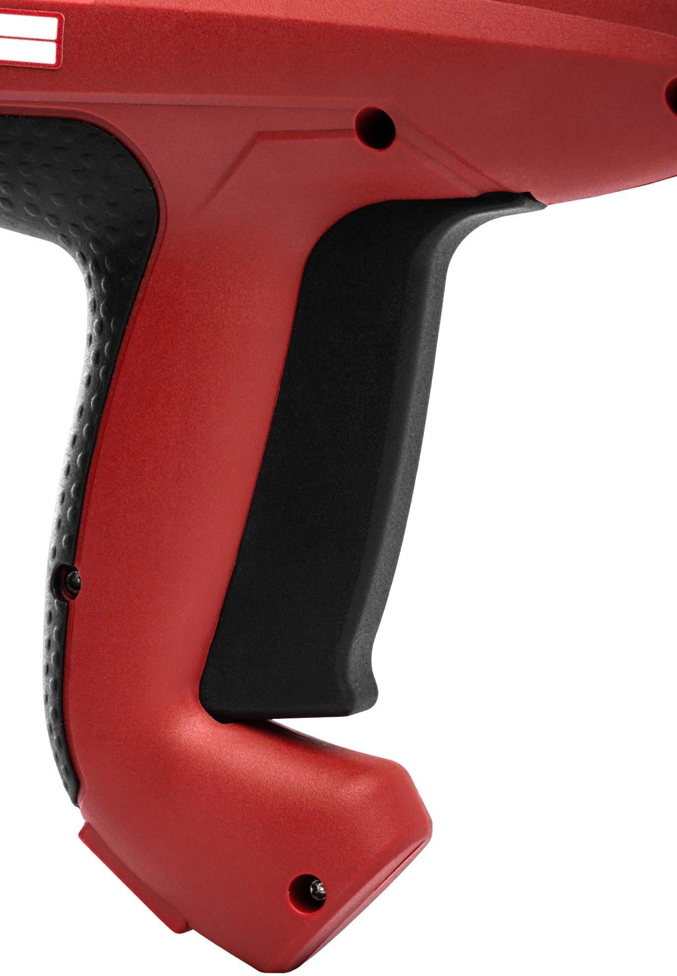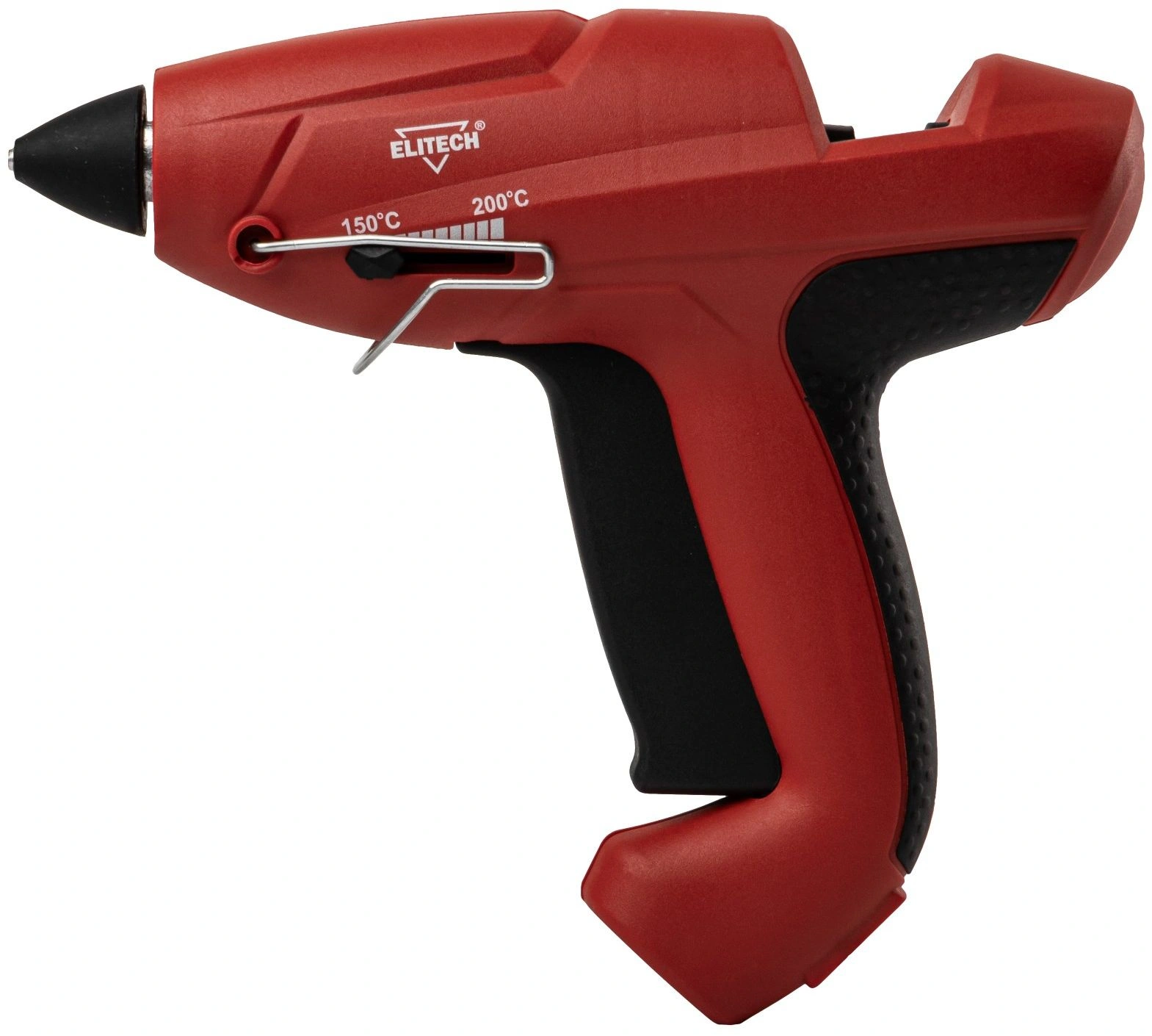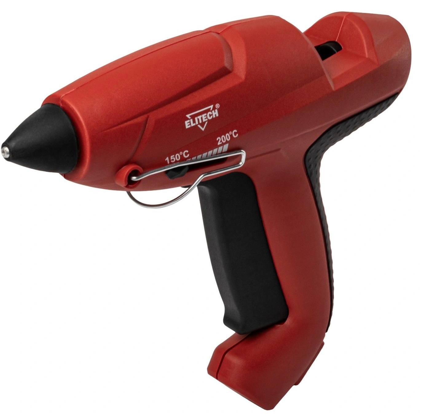 Регулировка температуры. Беспроводной пистолет. Удобная складная подставка на пистолете. Стационарная подставка с блоком питания. Визуальный контроль остатка клеевого стержня. Термоизолирующая насадка сопла. Эргономичная нескользящая рукоятка.