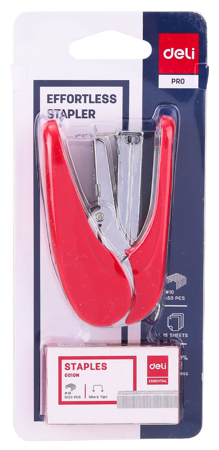 Комплект степлер+скобы Deli E0365 Essential N10 (10листов) снижение усилия ассорти 50скоб коробка