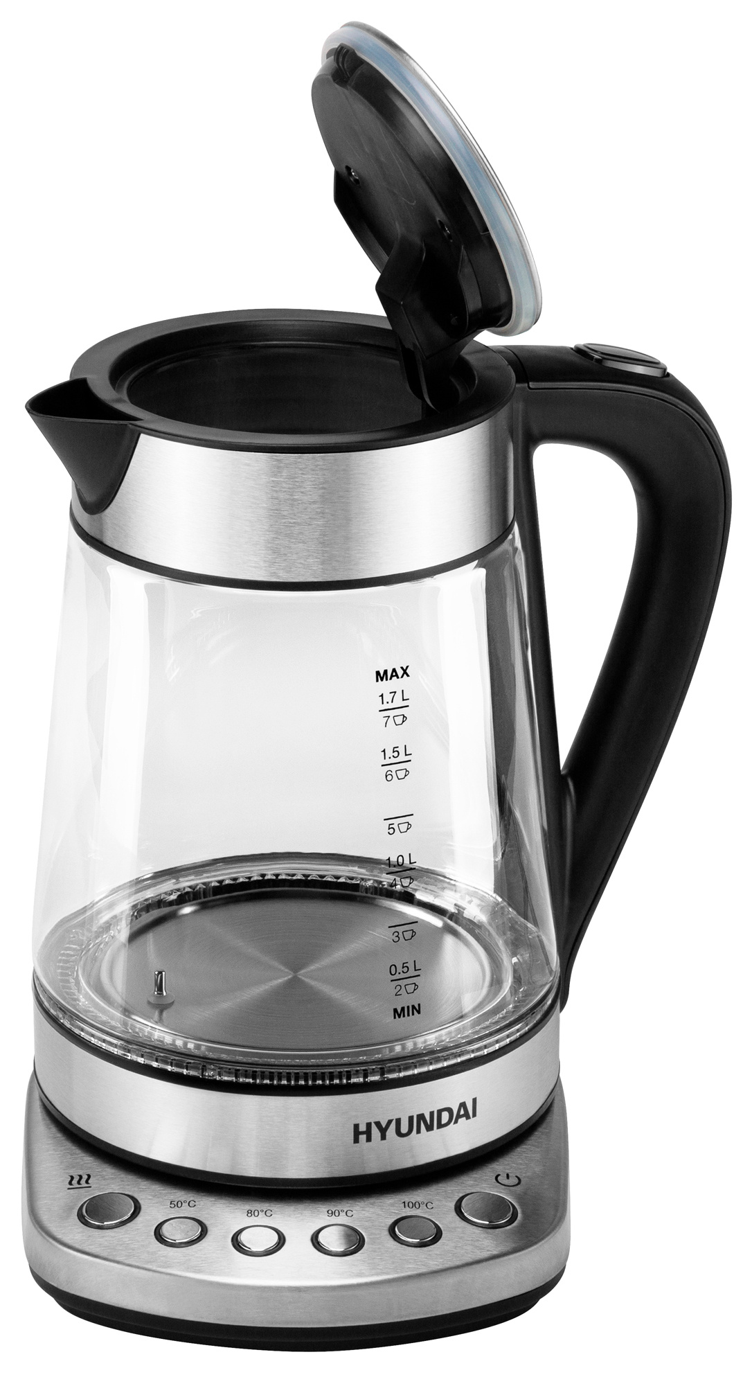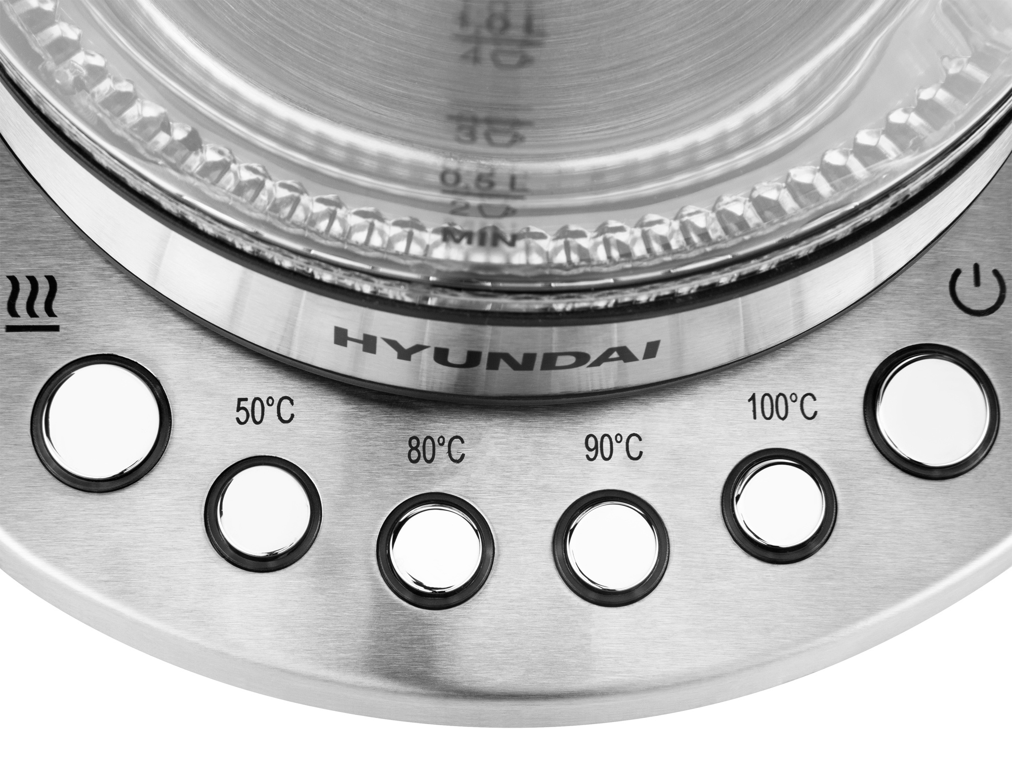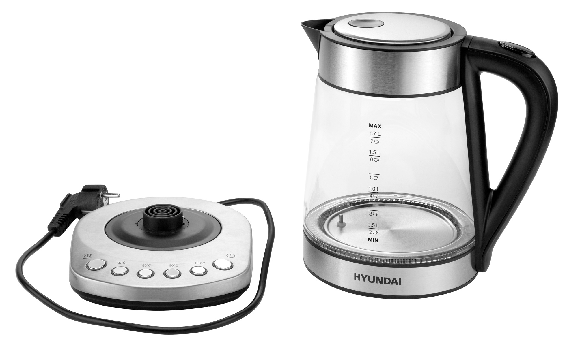 Электрический чайник Hyundai HYK-G3026 поставляется с «умной» подставкой, которая позволяет подстроить работу прибора под разные ситуации.