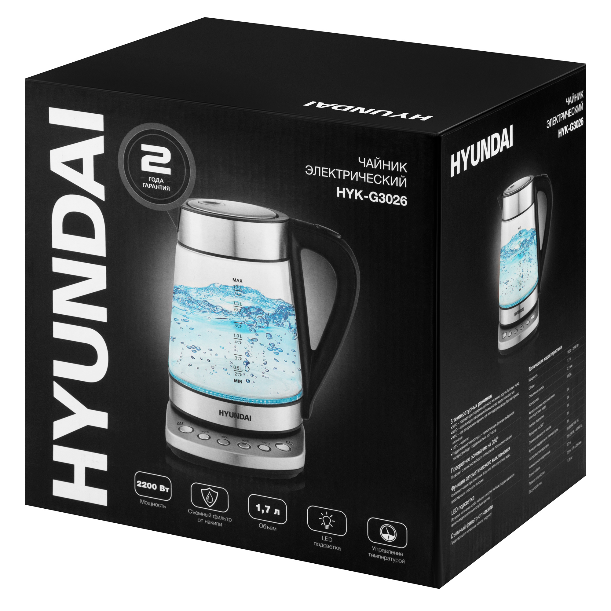 В носике Hyundai HYK-G3026 расположен эффективный фильтр, избавляющий жидкость от накипи при наливе.