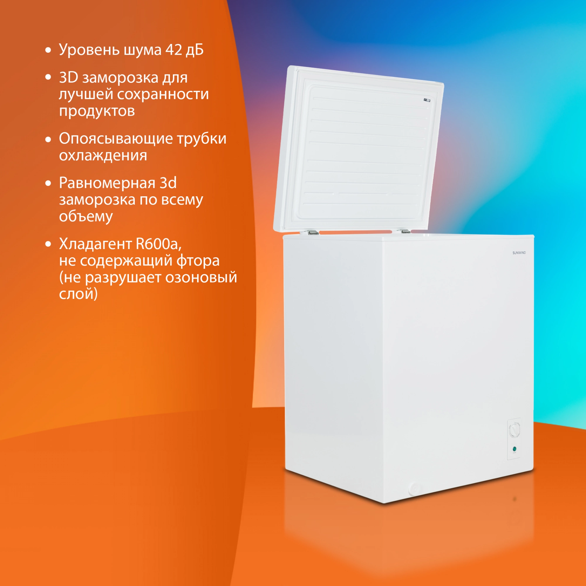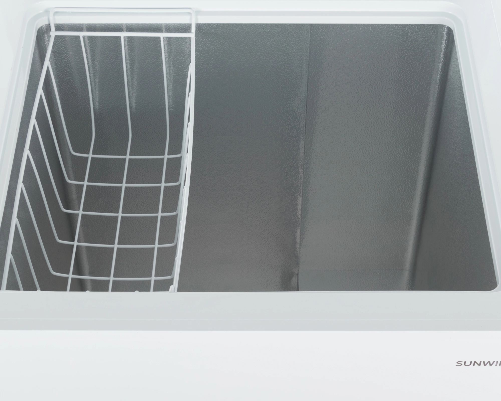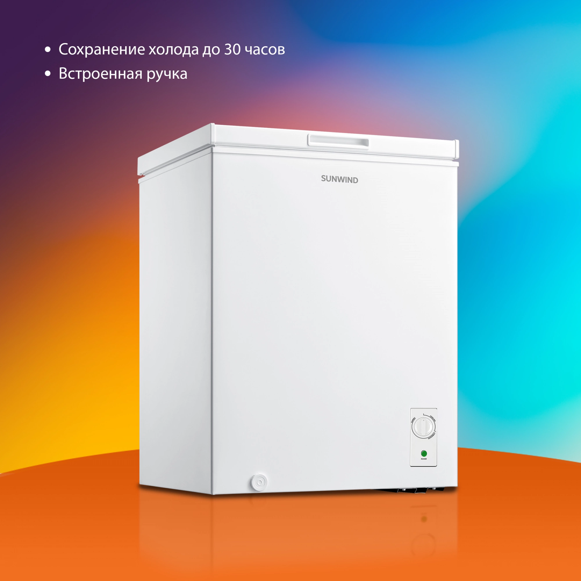 Вместительный морозильный ларь SunWind SCH155 имеет небольшие габаритные размеры и выгодно впишется даже в условия ограниченного пространства.