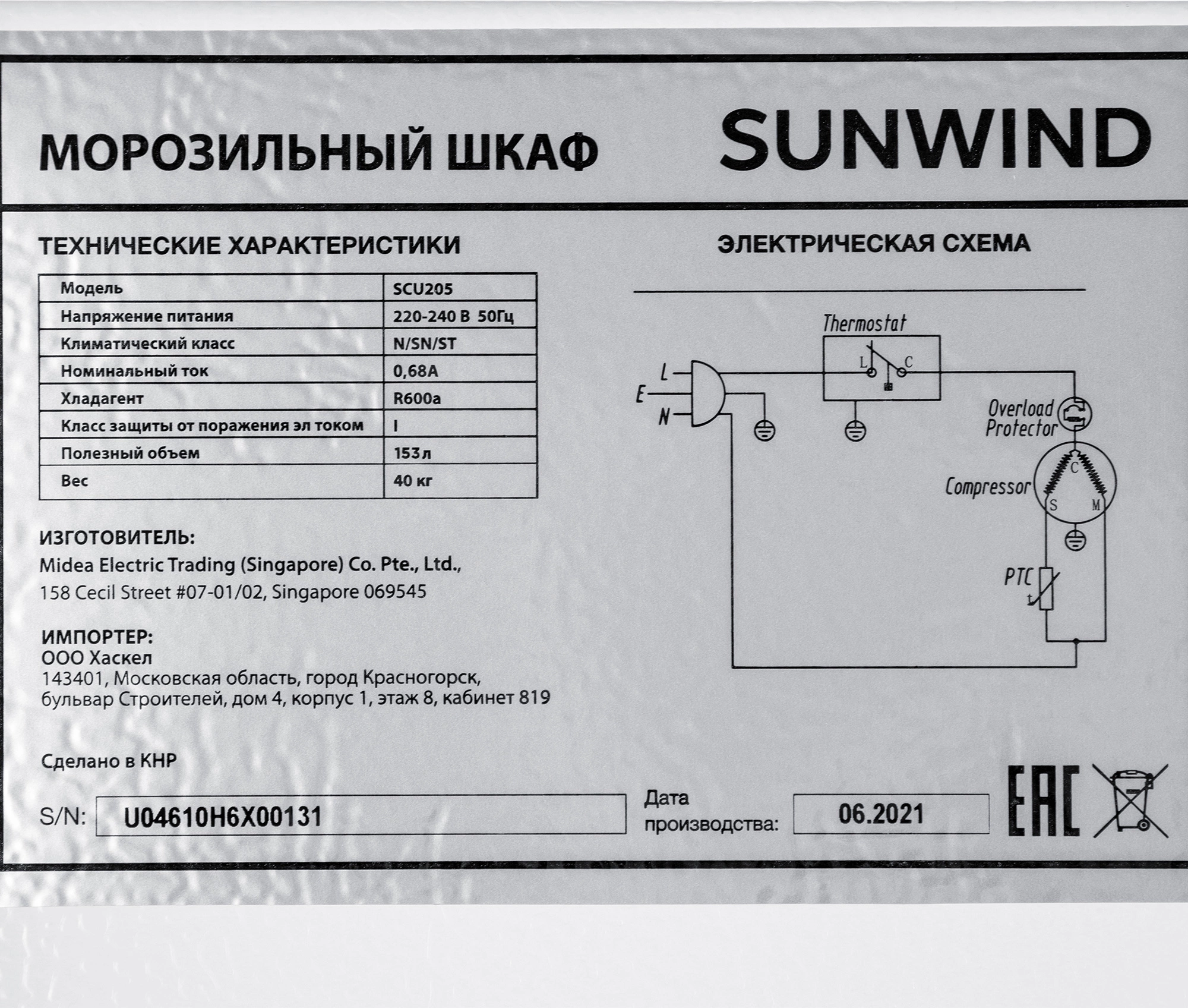 SunWind SCU205 – это вместительная морозильная камера, выполненная в форм-факторе классического холодильника.