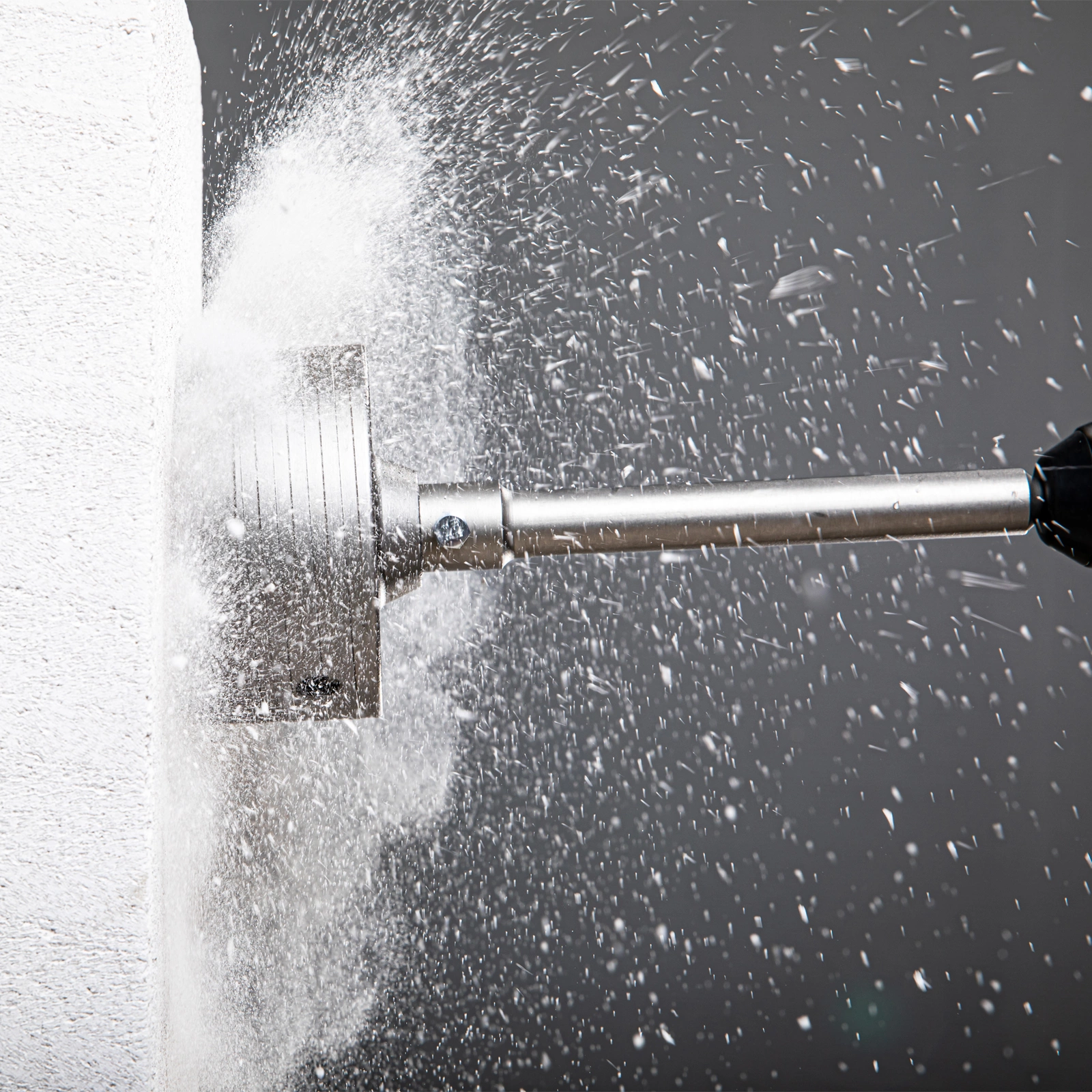 Буровые коронки в зависимости от применяемого хвостовика используются в ударных дрелях и перфораторах, имеющих систему крепления SDS-Plus или SDS-MAX. Оснащены твердосплавными зубьями из ВК8. Посадочный диаметр коронки - M22. Разборная коронка. Сверление сухое.