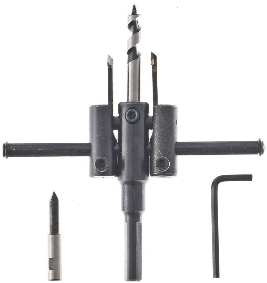 Предназначено для сверления отверстий в дереве. Твердосплавные режущие кромки обеспечивают ровный рез. Глубина сверления материала до 30 мм. Быстрая регулировка диаметра реза в диапазоне 30-120 мм. Режущие кромки из твердосплавной стали ВК8. Диаметр хвостовика 10 мм.