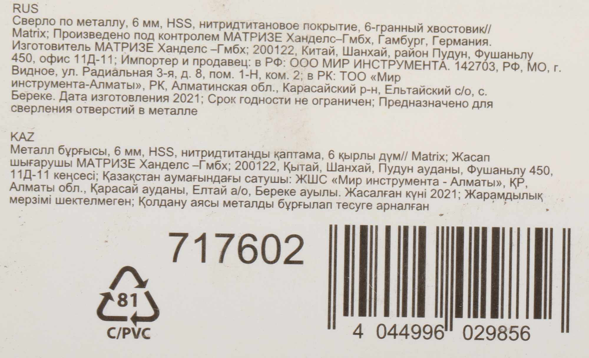 Сверло по металлу изготовлено из инструментальной легированной стали. Поверхность сделана из титаносодержащего сплава, что значительно повышает эксплуатационные характеристики сверл по металлу. Покрытие из нитрида титана увеличивает стойкость инструмента в 2–2,5 раза.