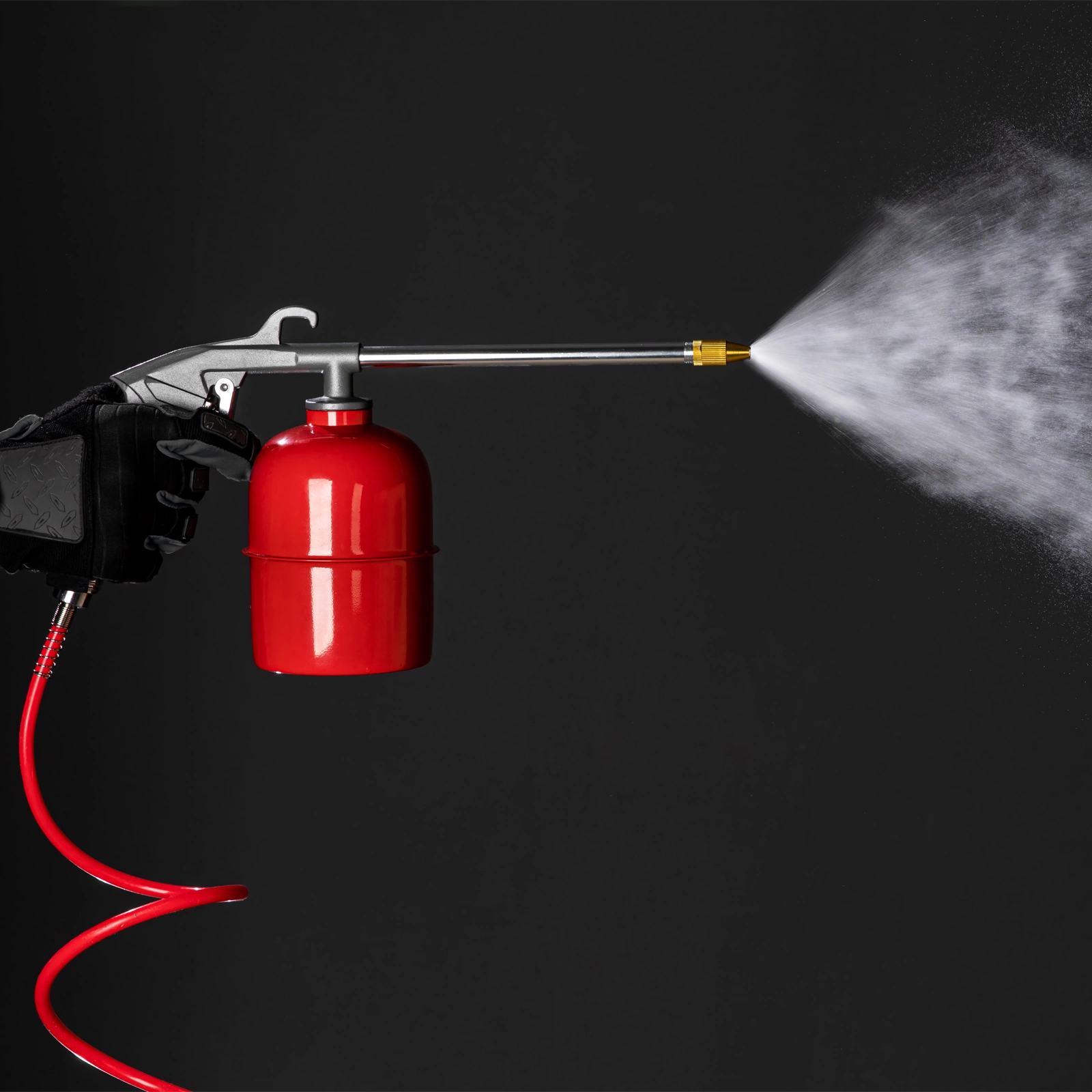 Удлиненное сопло - для работы в труднодоступных местах. Малый вес позволяет комфортно работать в течение длительного времени. Низкая пожаро- и взрывоопасность рабочего процесса.