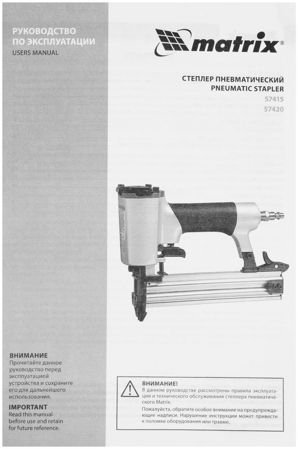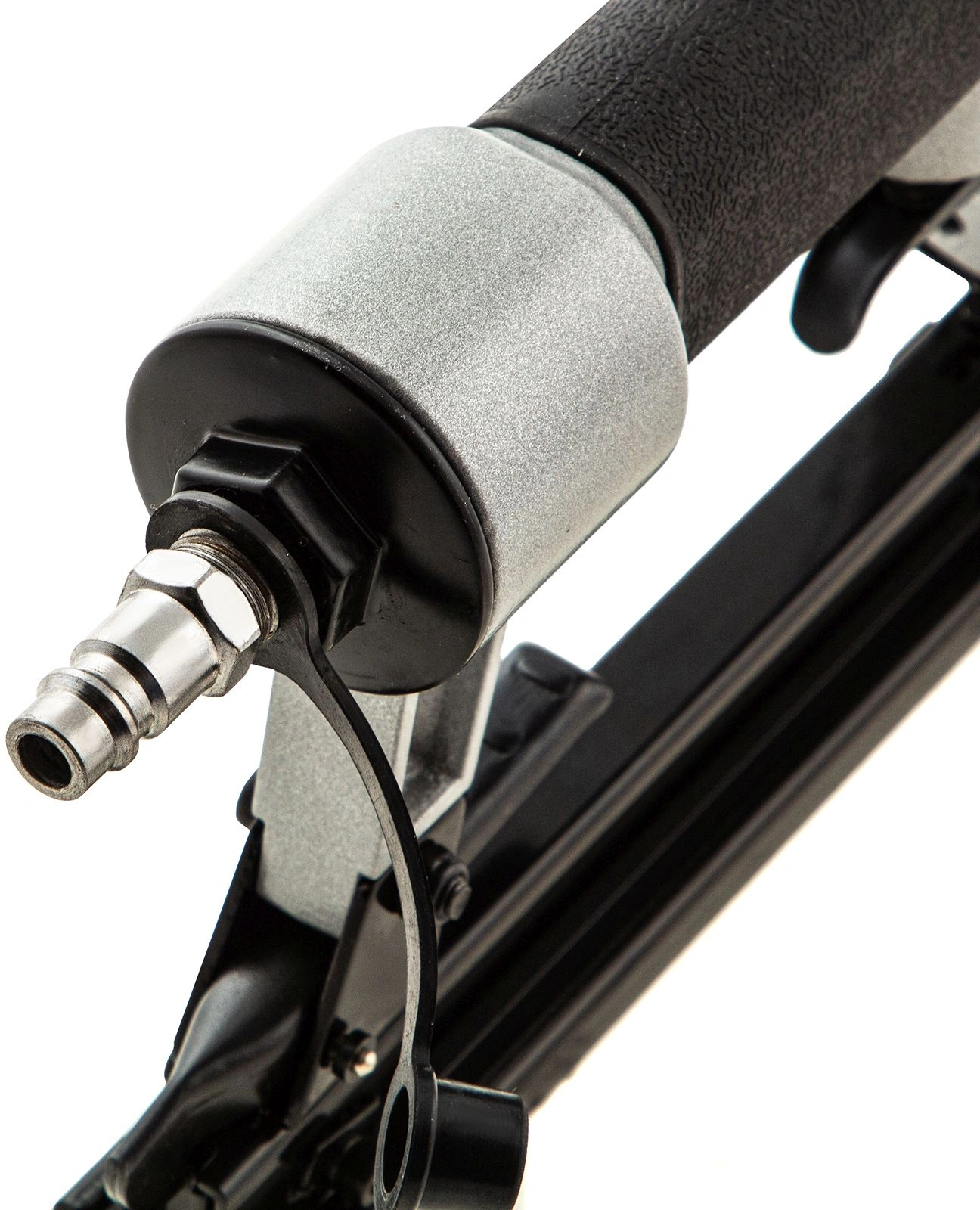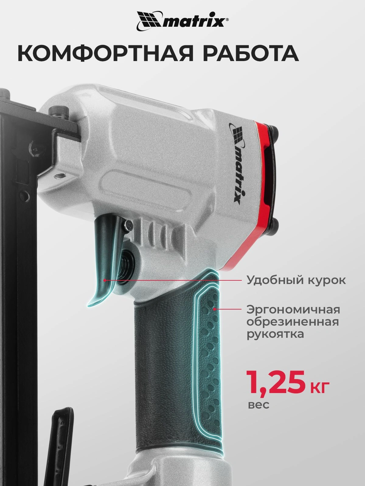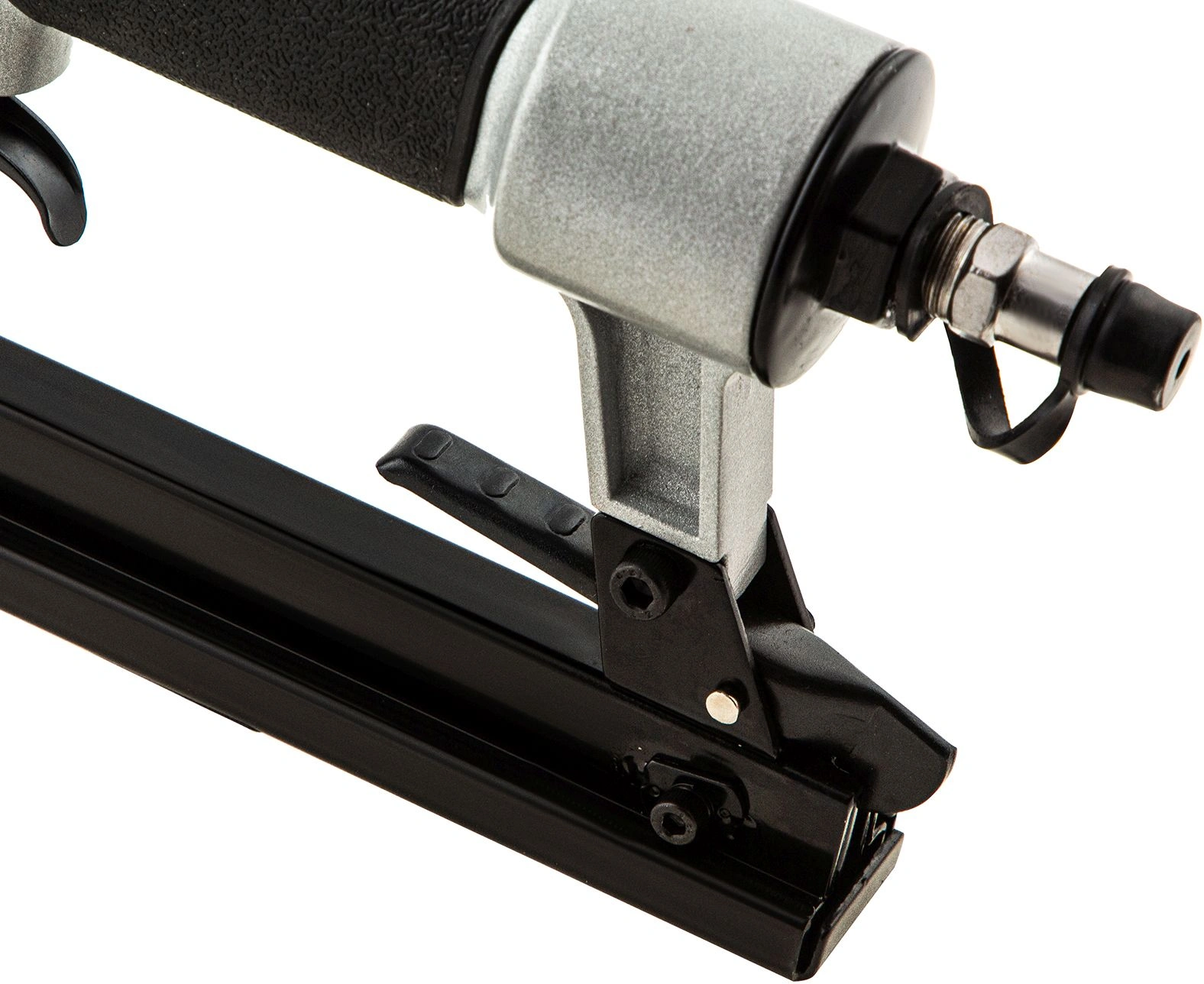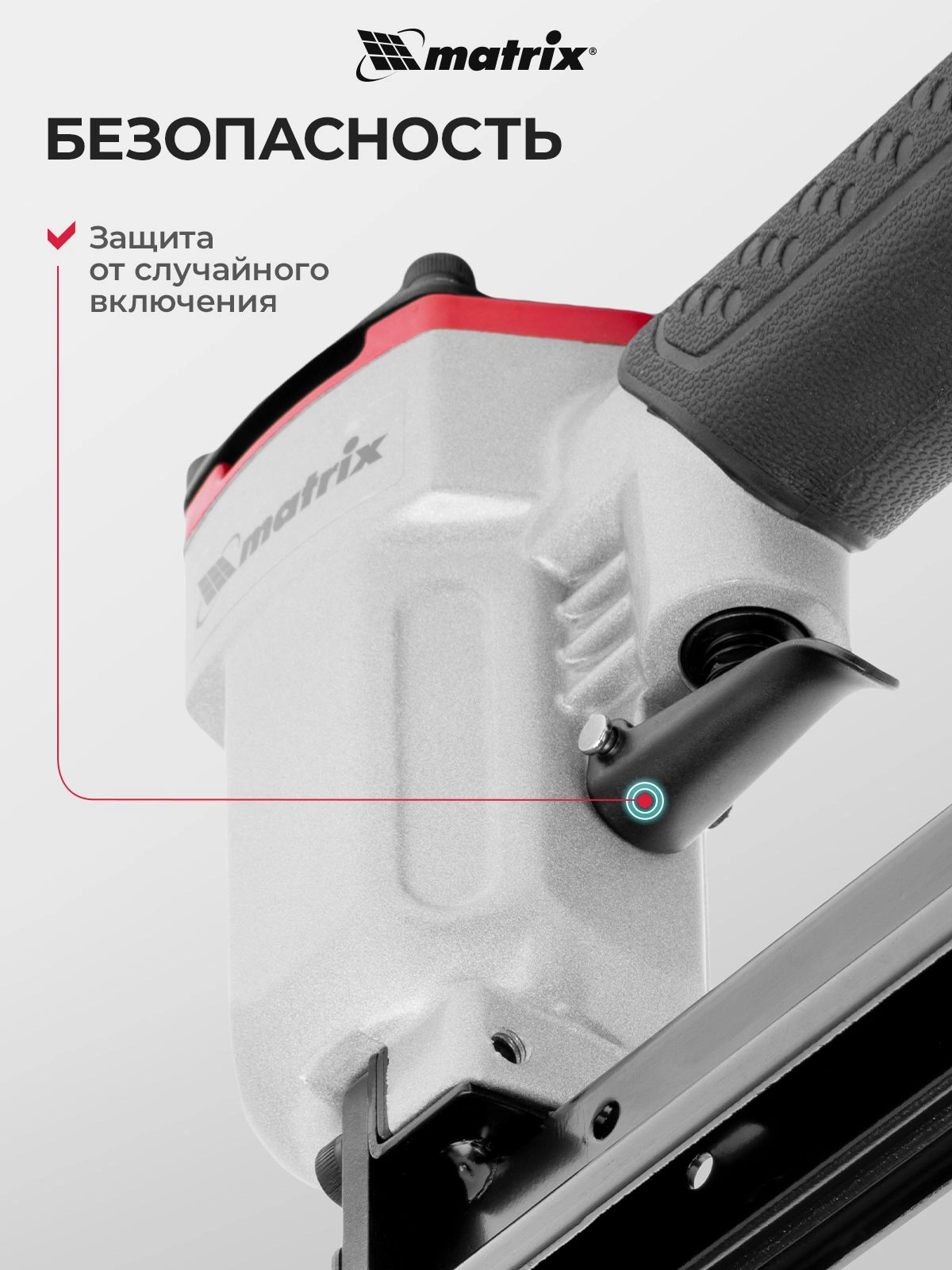 Инструмент обладает высокой прочностью, так как он полностью выполнен из качественных и износостойких материалов. На корпусе пневматического степлера MATRIX 57420 есть специальное покрытие для удобного обхвата и удержания инструмента.