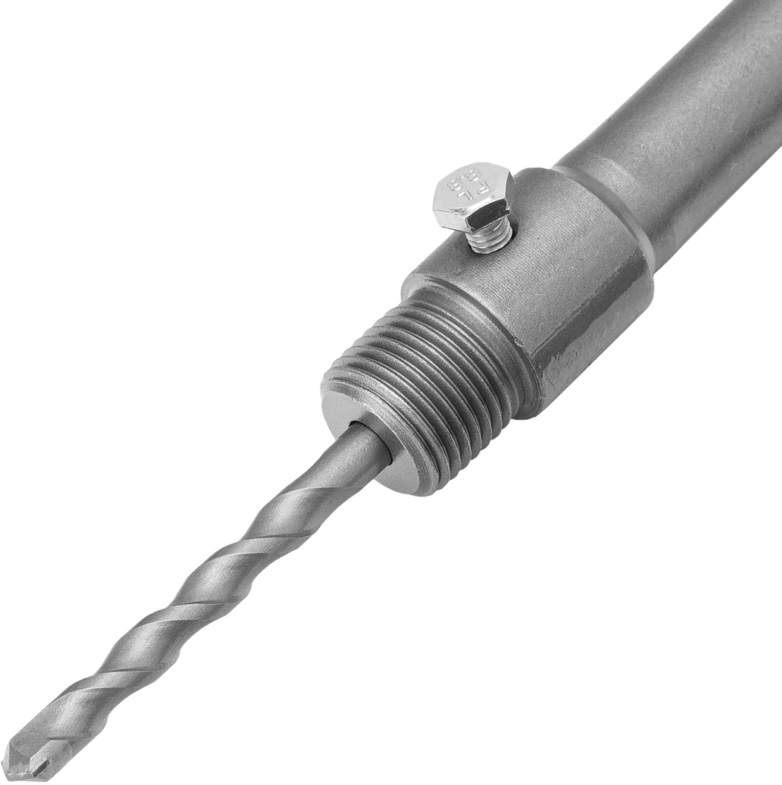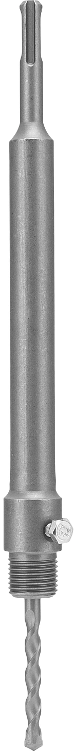Хвостовик изготовлен из углеродистой стали и имеет профиль SDS-PLUS, применяется с перфораторами. Служит для крепления центрирующего сверла и позволяет увеличить глубину сверления коронками по бетону.