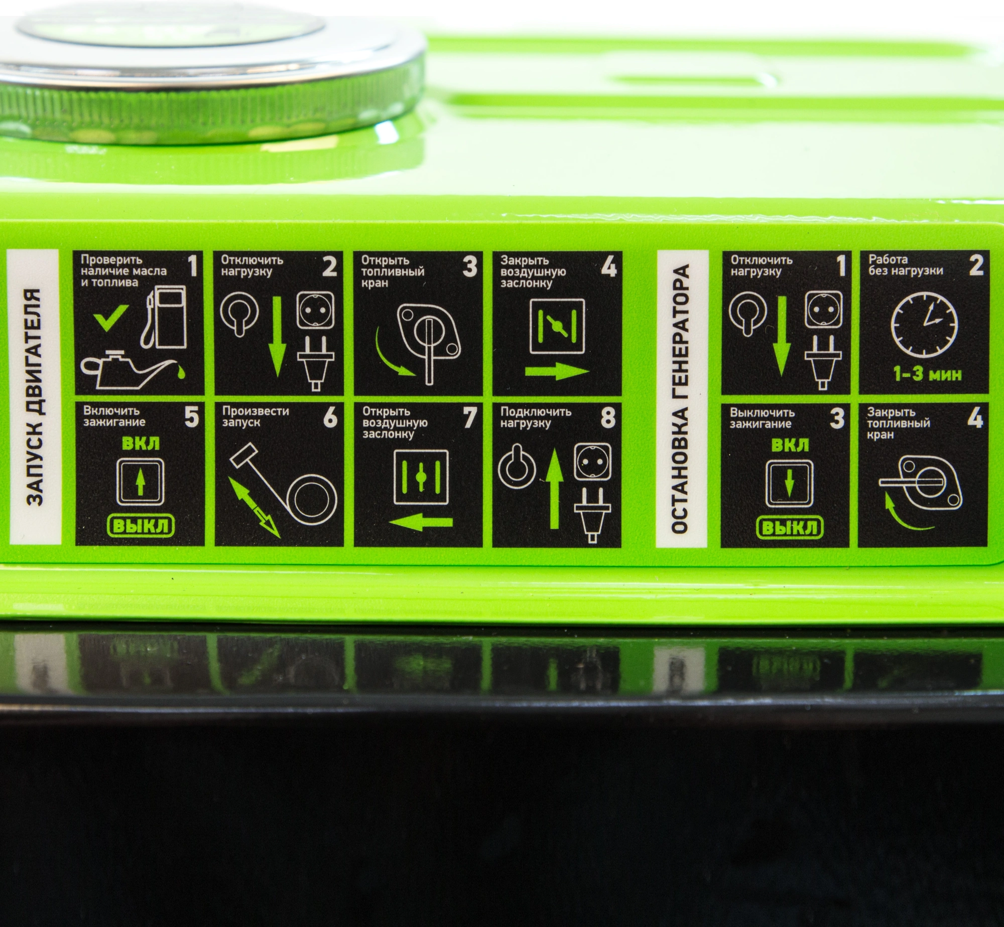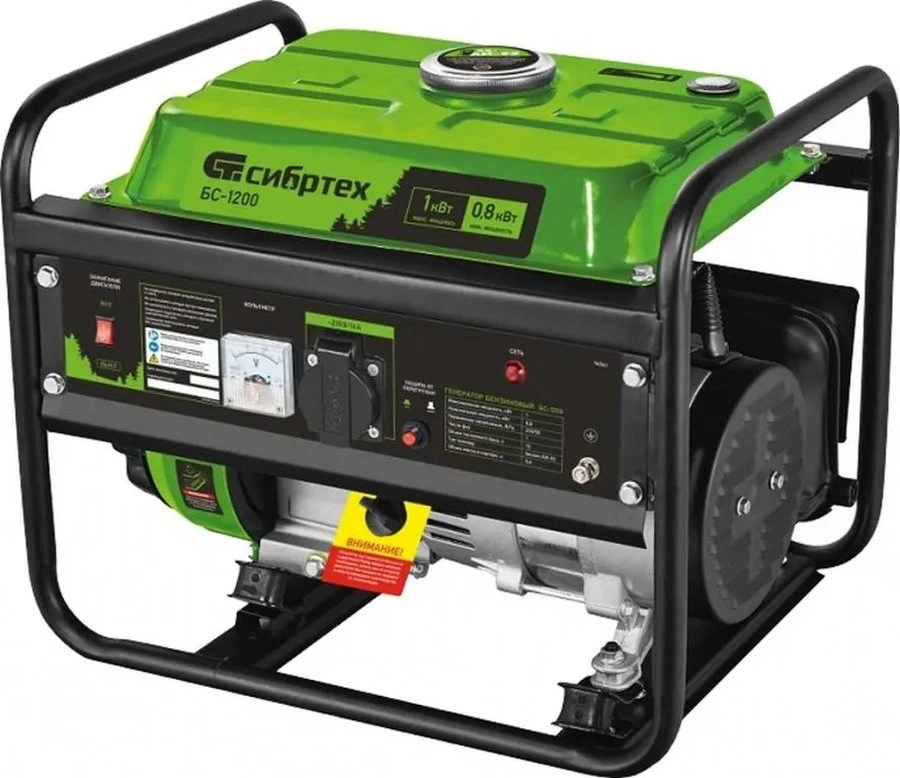 Генератор Сибртех рассчитан на подключение одного инструмента с высоким пусковым током:дрель,перфоратор,УШМ. Блок AVR обеспечивает работу без скачков напряжения.Индикатор подключения к сети,индикатор топлива. Вольтметр. Система защиты от работы при низком уровне масла. Система воздушного охлаждения.