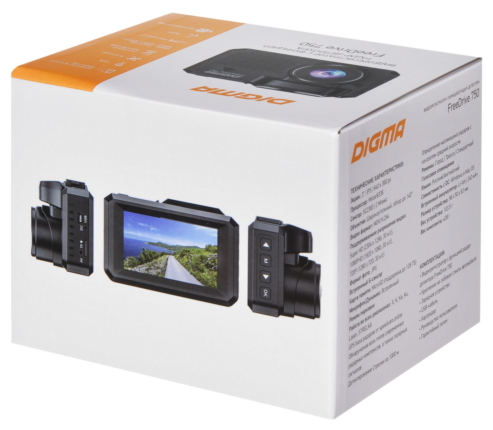 Видеорегистратор FreeDrive 750, крепление на лобовое стекло автомобиля, USB-кабель