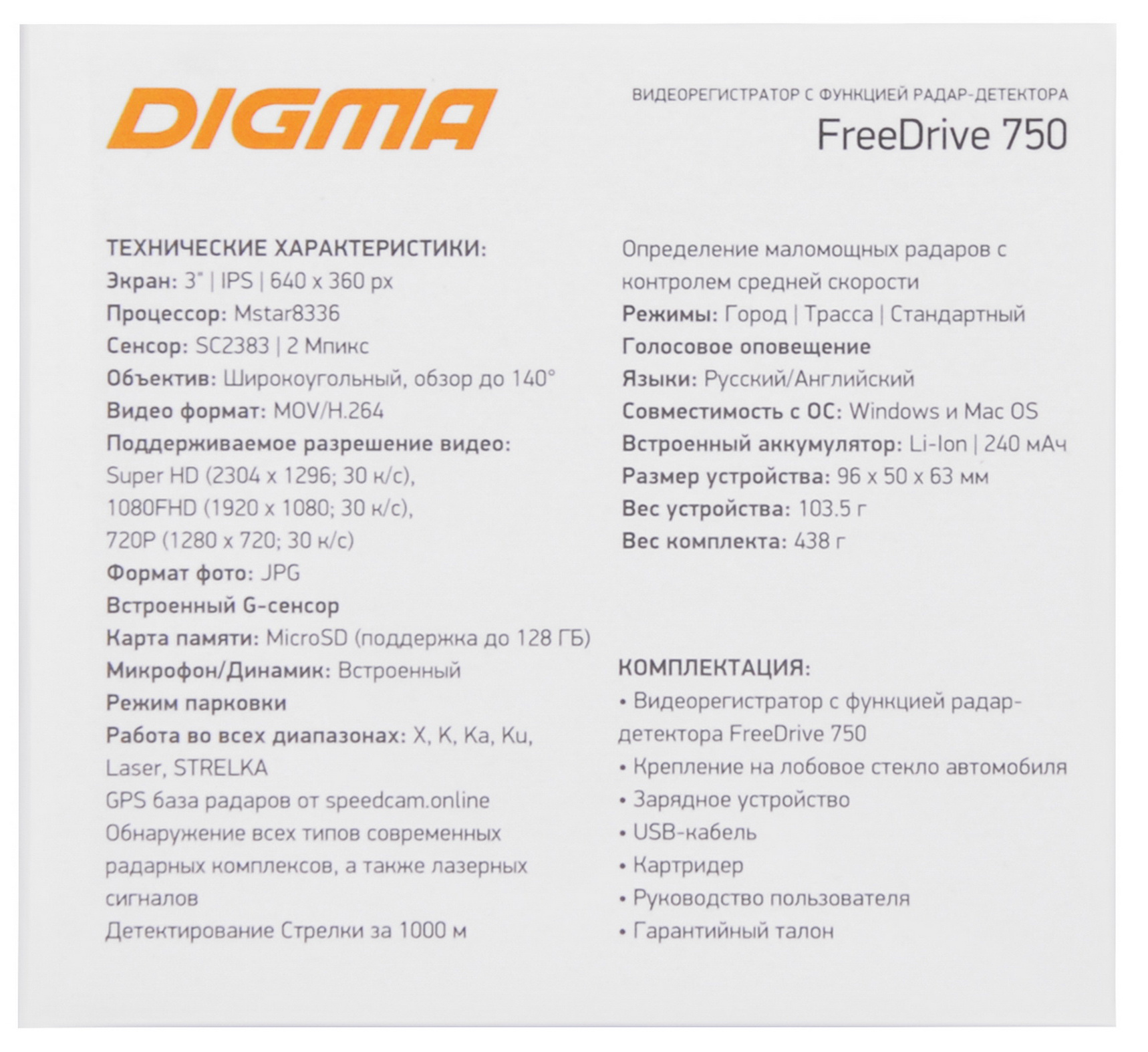 Высокое разрешение съемки SHD (1296p).Обновляемая база камер Speedcams. IPS экран 3 дюйма. Super Night Vision фильтр. Интеллектуальный фильтр ложных срабатываний. Голосовое оповещение. Циклическая запись. Штамп даты и времени.