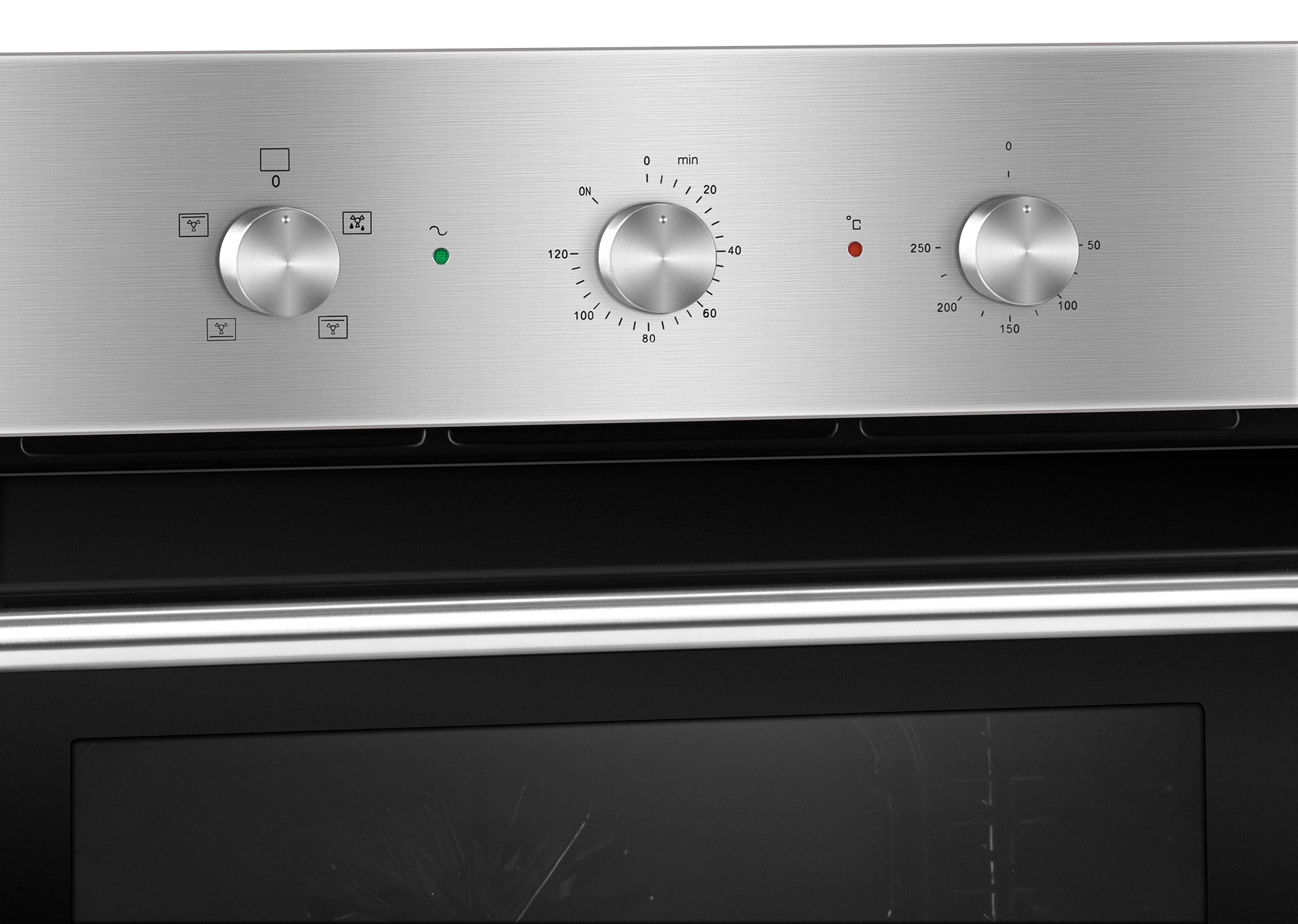 Дверь духового шкафа сделана полностью из трёхслойного стекла, защищающего от высоких температур.
