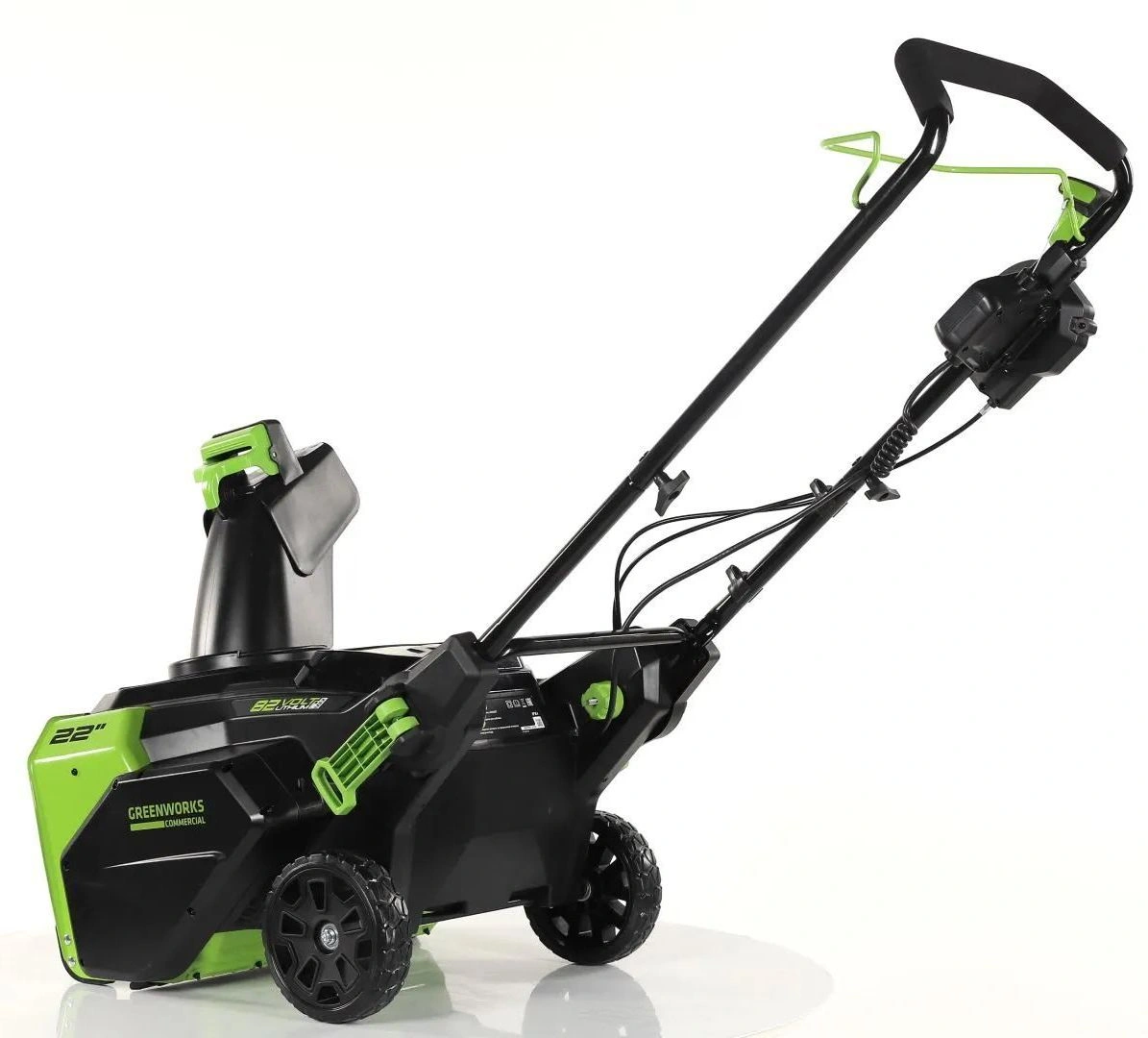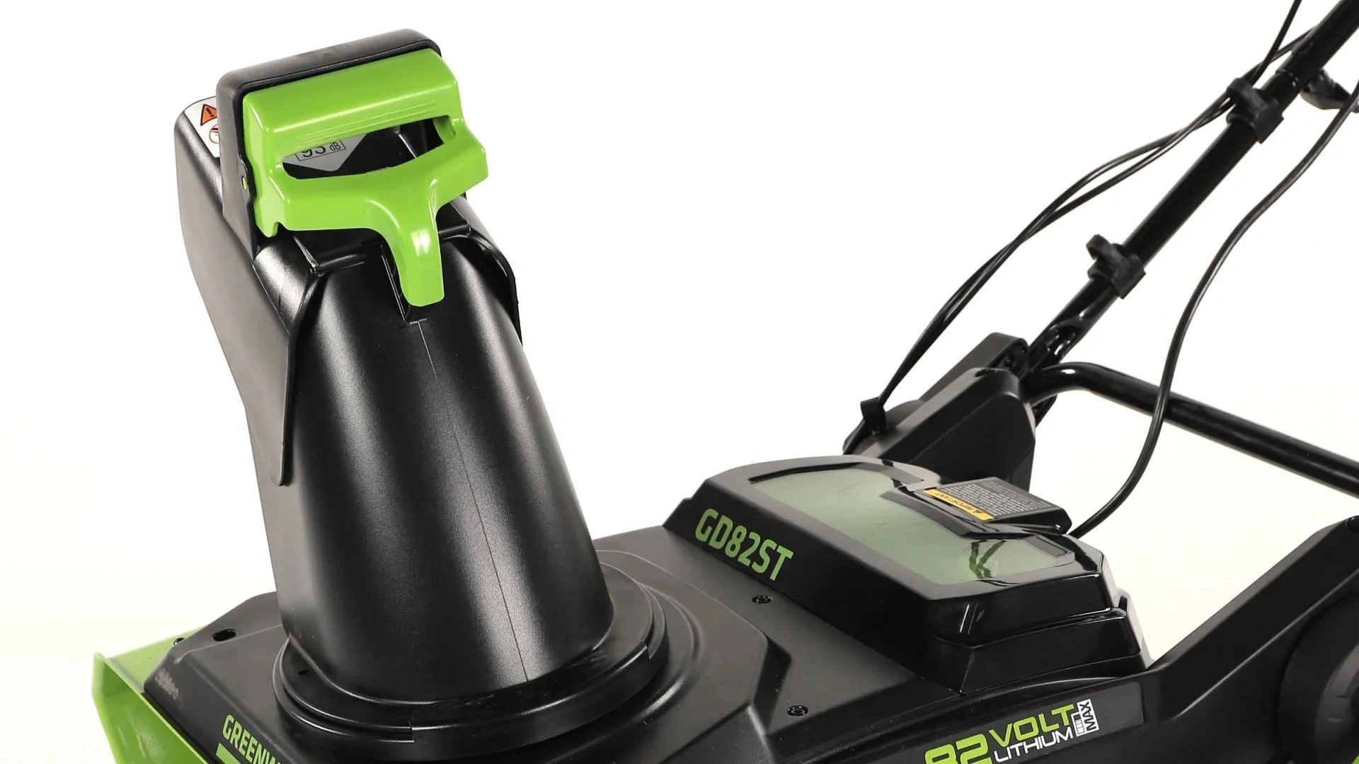 Снегоуборщик аккумуляторный Greenworks из линейки устройств 82 вольт Pro (модель GD82ST) - предназначен для очистки от снега территории перед домом, гаражом, а также веранд, дорожек и других мест, где затруднительно использовать бензиновый снегоочиститель или есть декоративные покрытия.